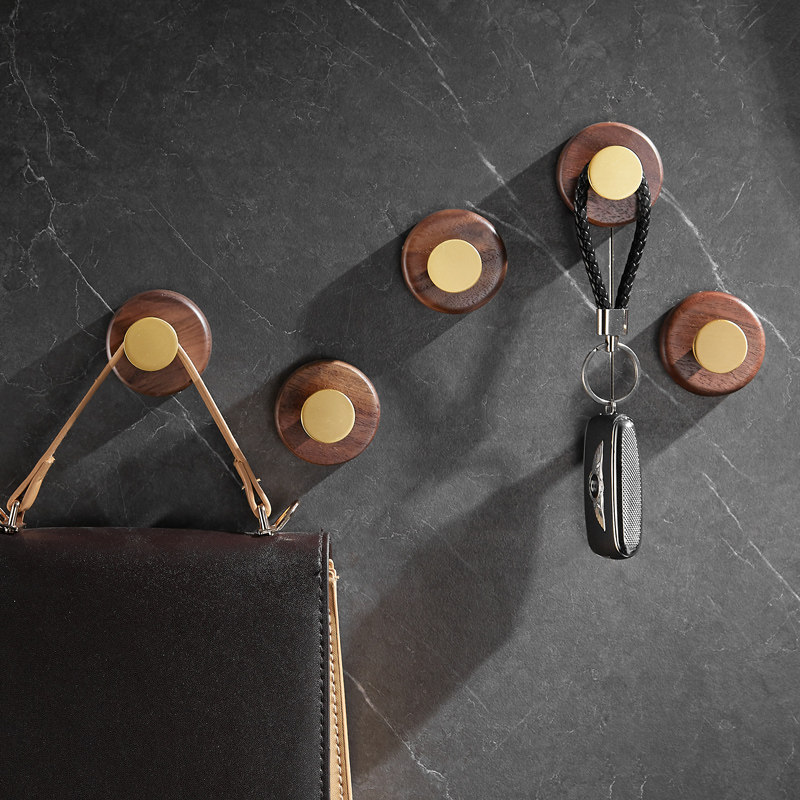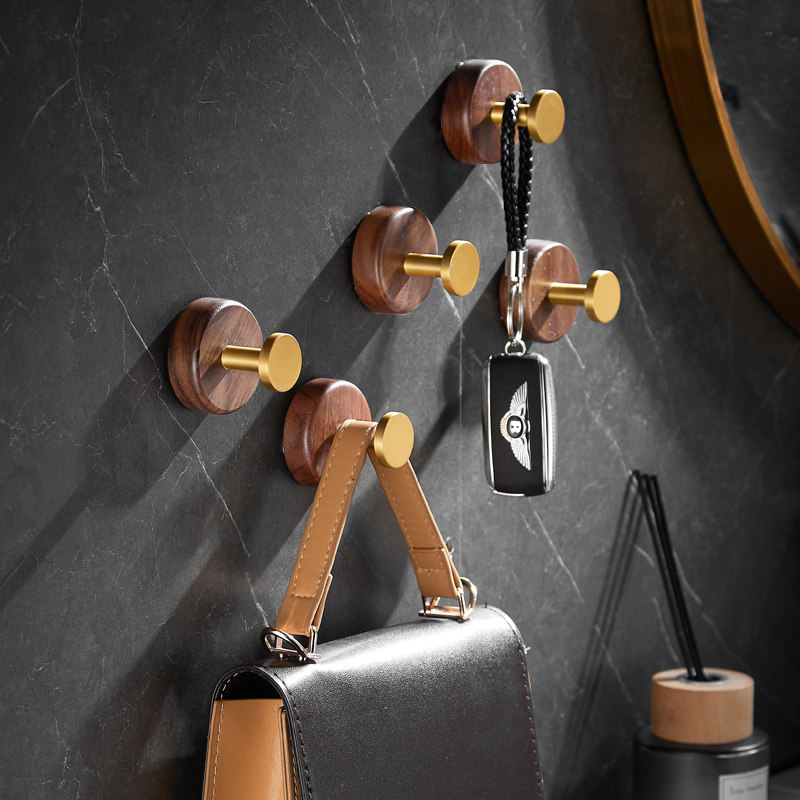 Walnuts Wood Clothe Hood Hook Creative Wall Wall-mounted Door Rear Wall Clothing Hook Single Hook Free From Punching Solid Wood Genguan