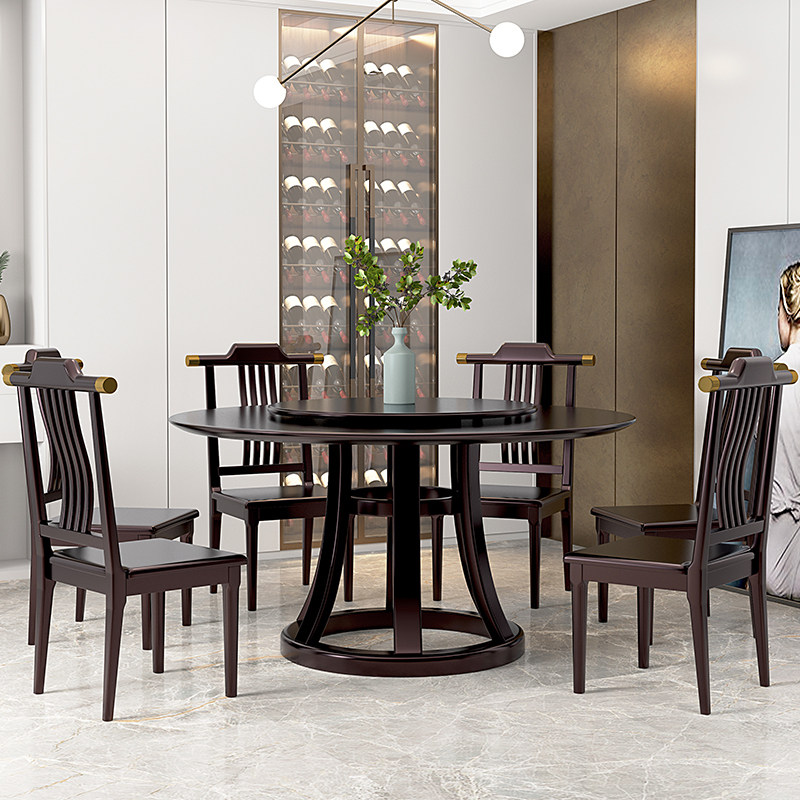 Full Solid Wood Table Log Meal Table Modern Minimalist Home Small Family Type Round Table New Chinese Style Brief Dining Table And Chairs Combination-Taobao