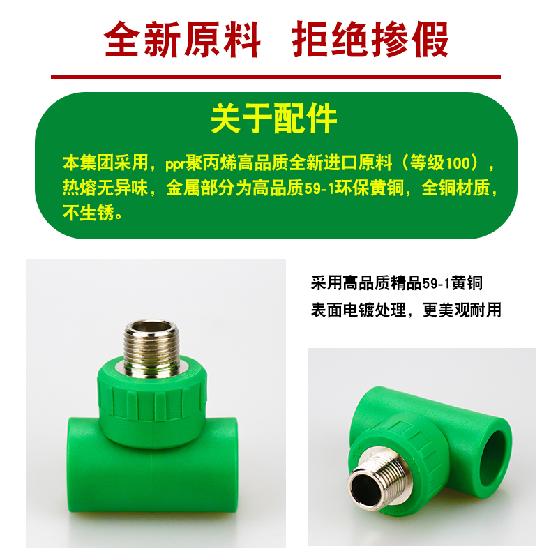 Green Antibacterial Ppr Water Mains External Wire Tee External Tooth 4 points 20 6 Water splitting pipe connector Water heating thermal capacity pipe brass