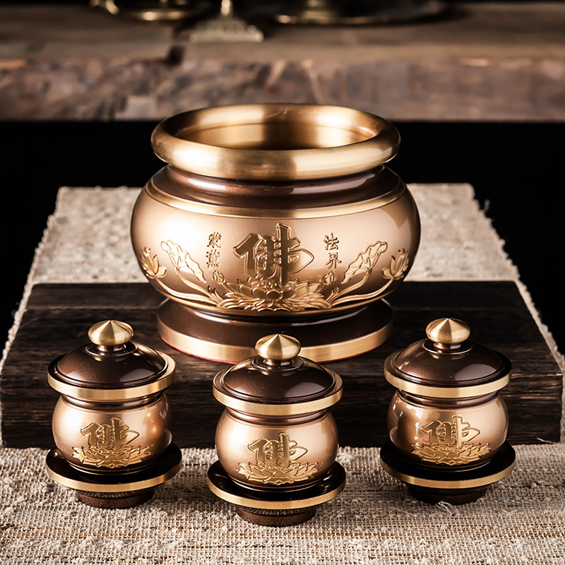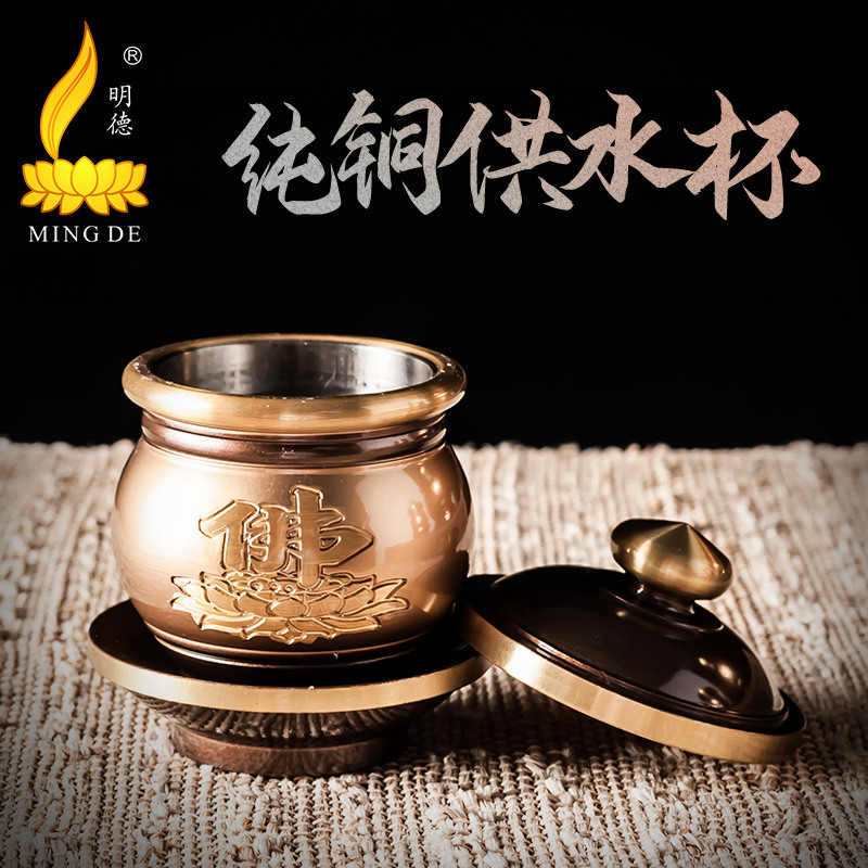 Pure copper lotus water supply cup offering cup holy water cup for Buddha cup household water purification cup tribute cup powder gold copper water cup