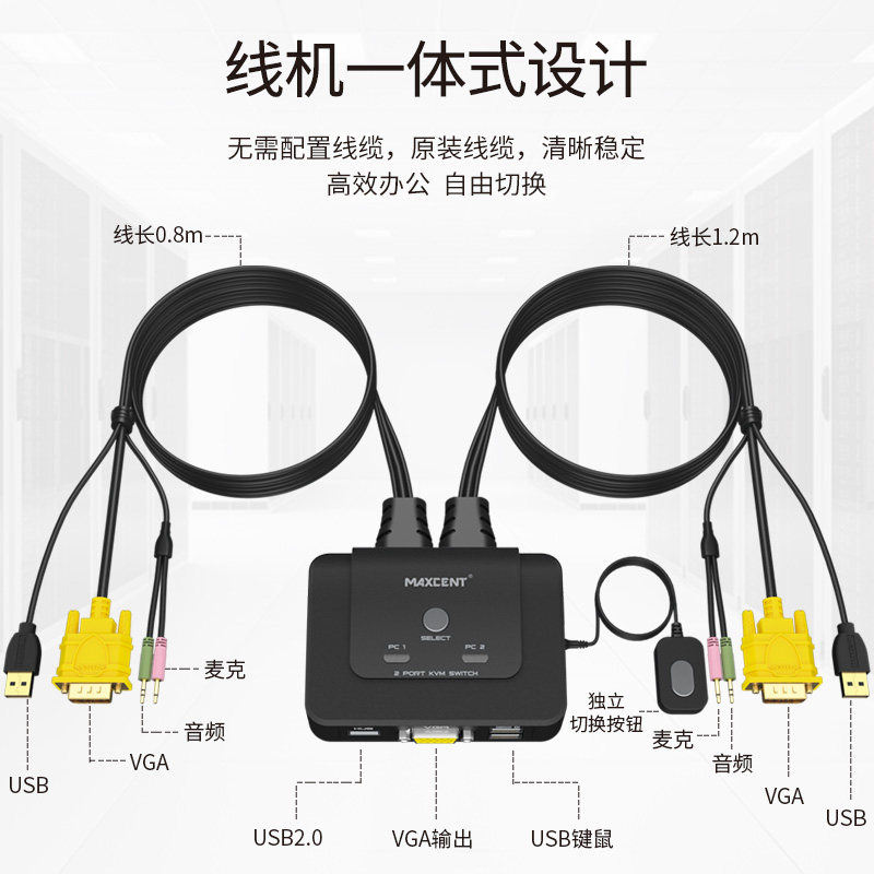 Maxicent (MAXCENT) KVM switcher 2-mouth VGA USB MOUSE KEYBOARD Shareware Two-in-out Support Audio Macprint Table Machine U pan AE-102V