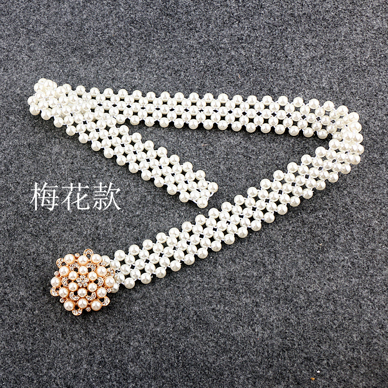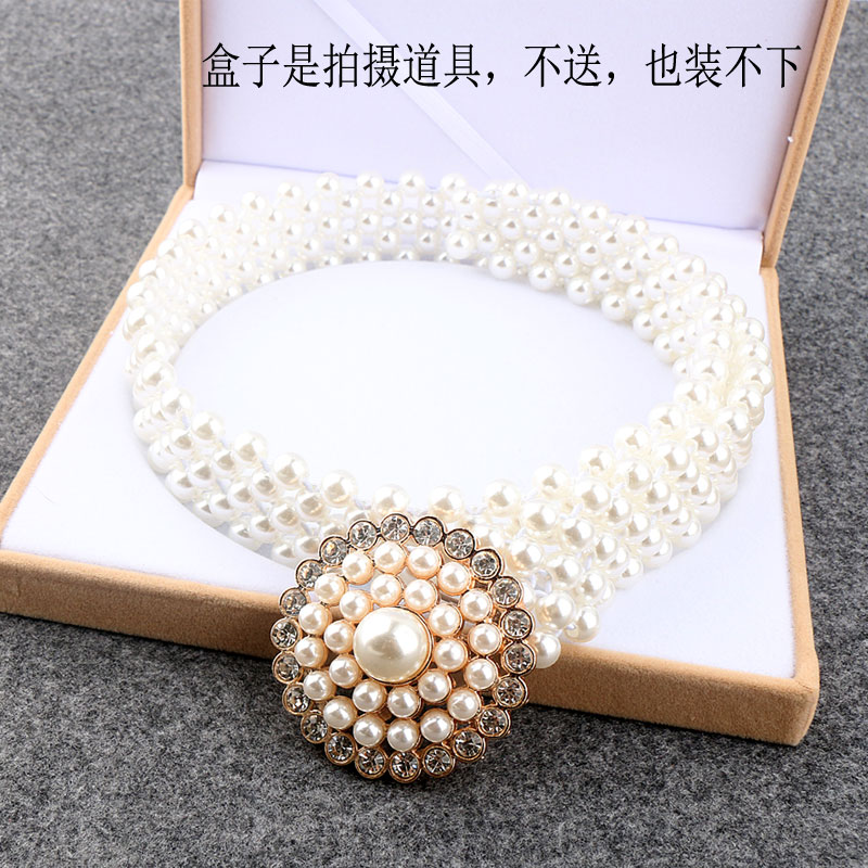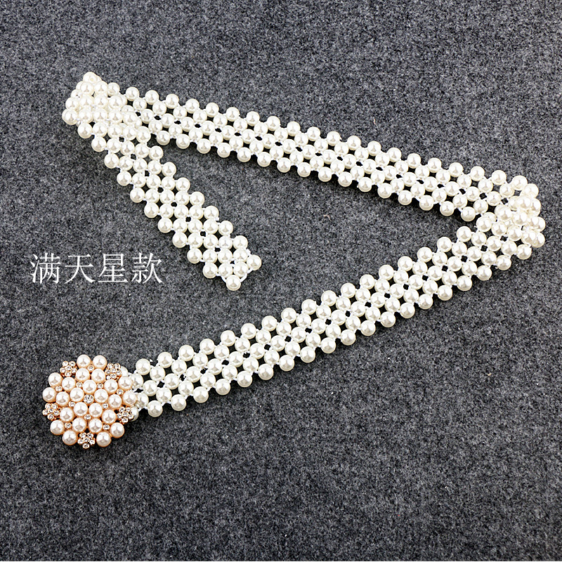 Women's buttoned head pearl belt dress waist thin stretch waist seal waist ornament with skirt stretch fashion
