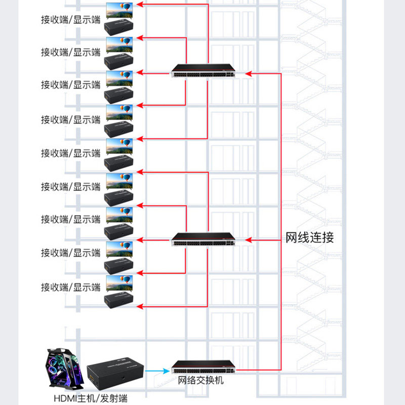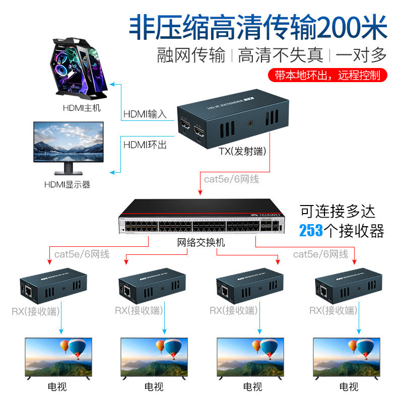 E network spatio-temporal HDMI extender HD to rj45 network port network cable network transmission 200 meters one-to-many network surveillance video converter usb interface POE signal amplifier to network transmission