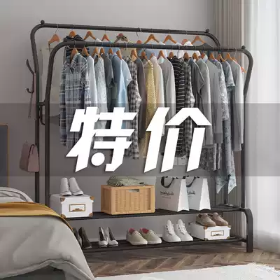 Simple coat rack double pole drying rack floor-to-ceiling bedroom household indoor clothes shelf folding hanger dormitory