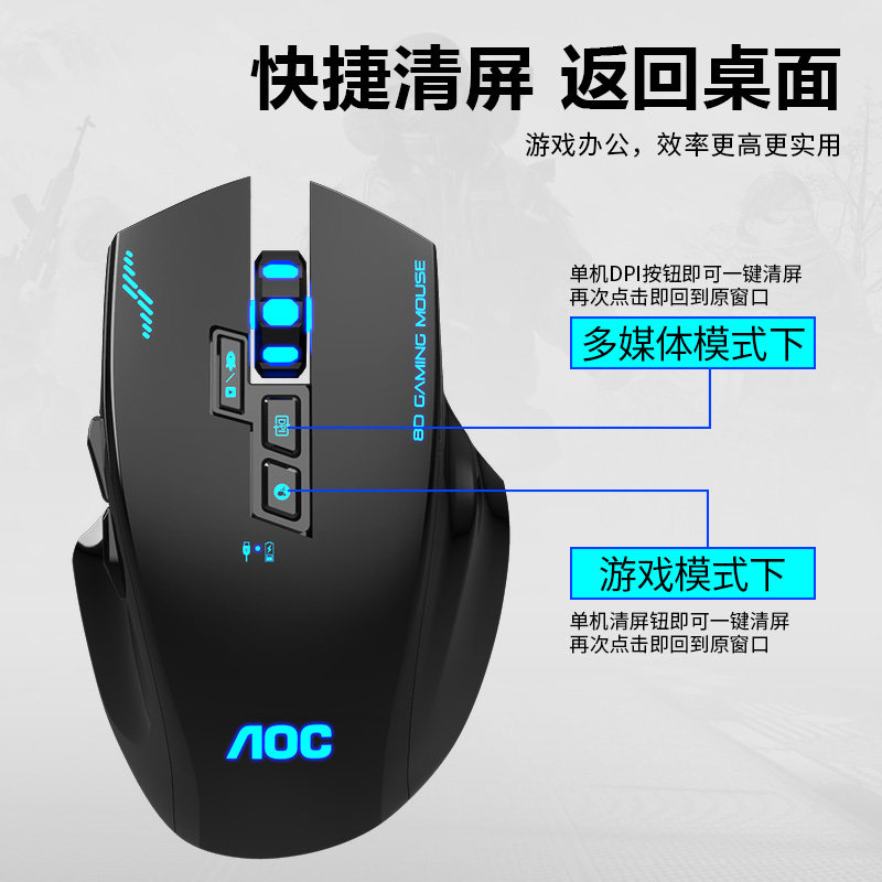 AOC rechargeable wireless dual-mode wired mouse e-sports game dedicated desktop computer notebook computer Universal