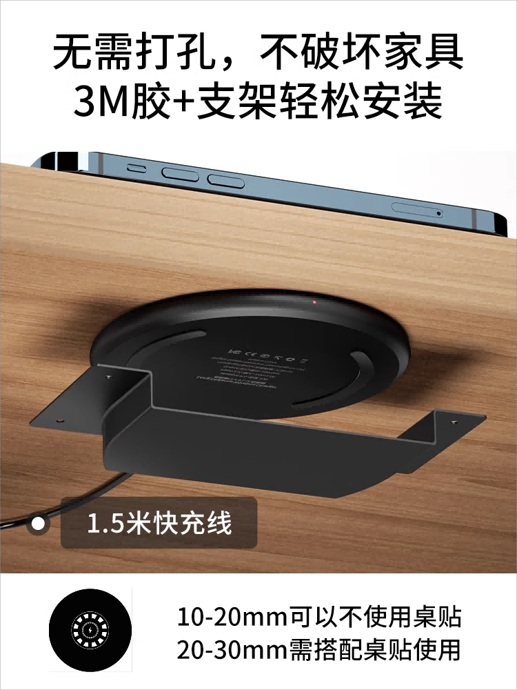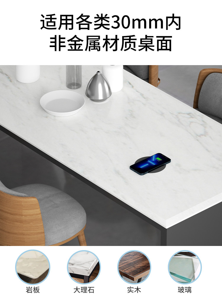 WENERGY air-separated wireless charger rock plate under desktop embedded hidden wireless charging base ultra-long distance Android universally applicable to Apple 15 iPhone 14 Huawei Xiaomi