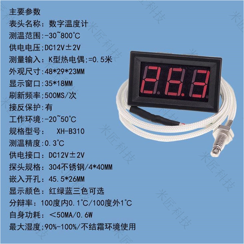 B310 digital display high temperature thermometer K-type thermocouple industrial digital thermometer DC12V -30~800℃
