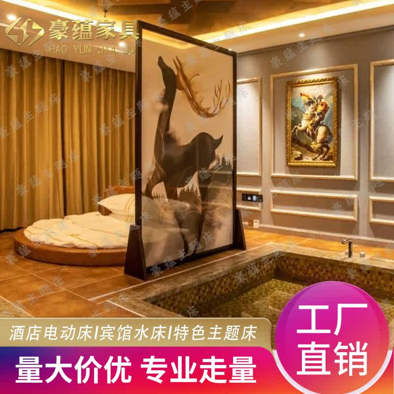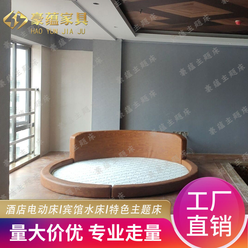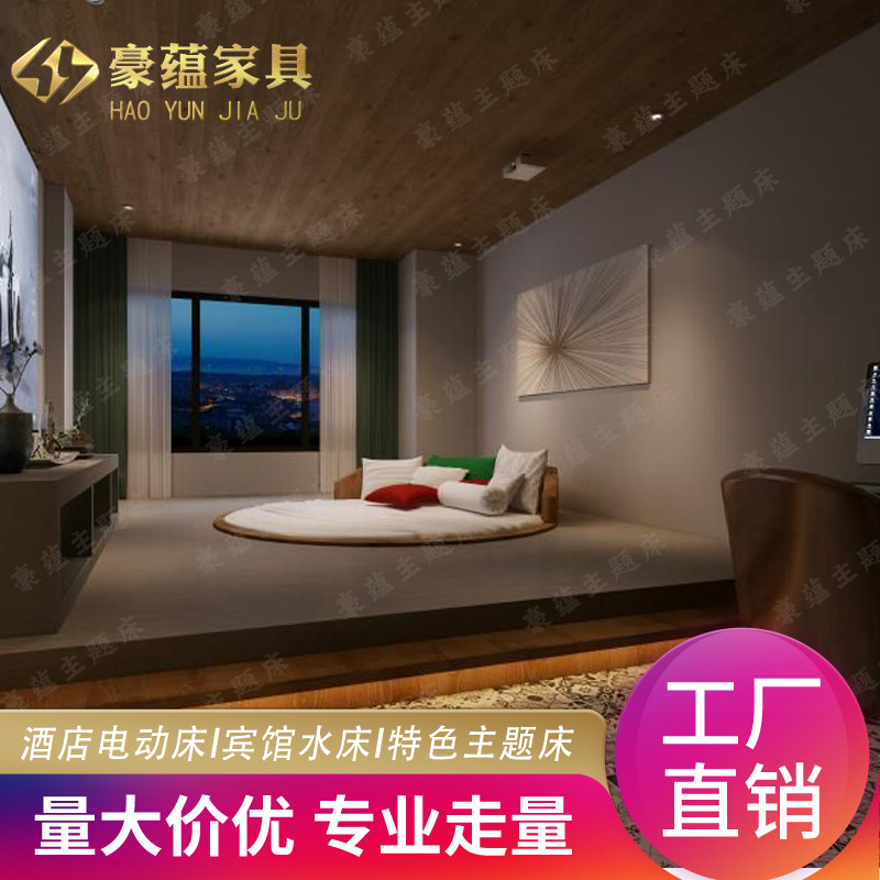 Featured e-sports hotel theme couple bed tatami wood color round bed tree pattern material homestay bed net red water bed