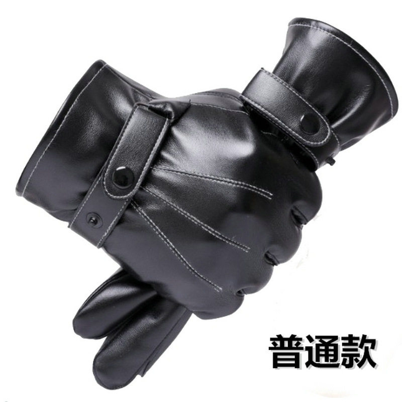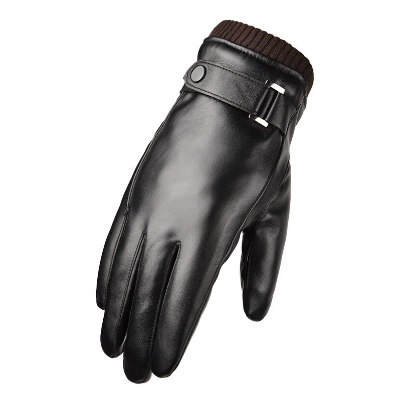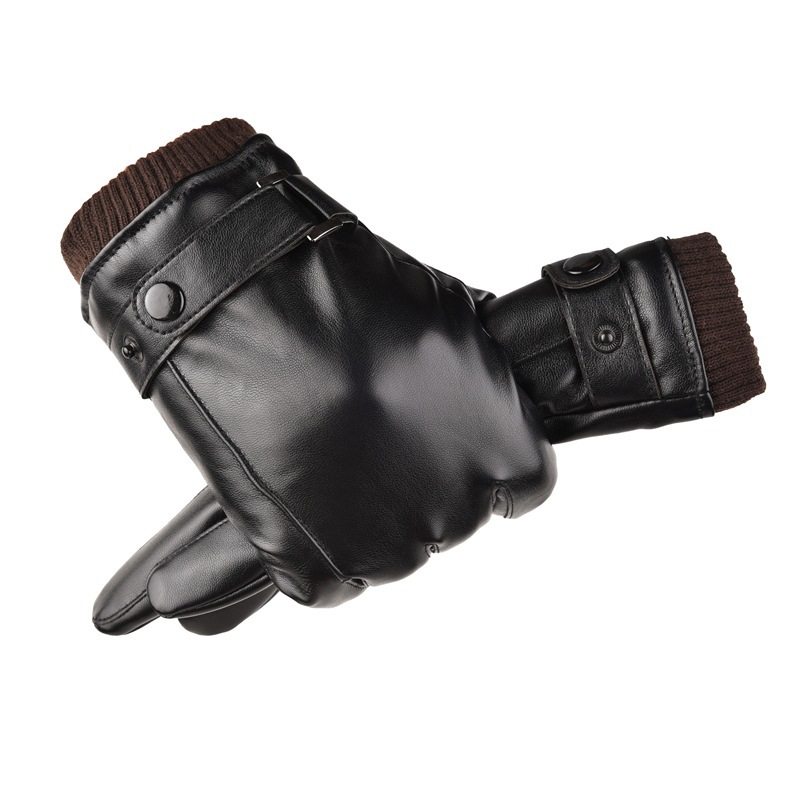 Leather Gloves Men Winter Thicken Plus Suede Cotton Warm Waterproof Touch Screen Outdoor Riding Bike Anti Slip Locomotive
