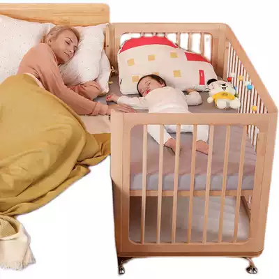 Babu bean crib solid wood non-lacquer splicing big bed baby bed multi-function removable newborn baby bed