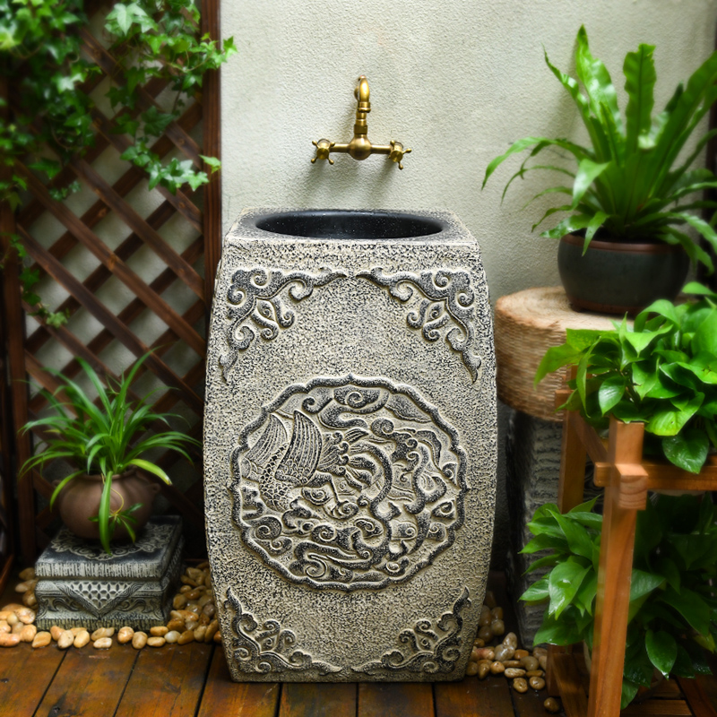 Mud dragon and phoenix (resin version) cement aggravated model (about 120 catties) blue dragon and phoenix (resin version) mud basin hot and cold faucet (resin version) blue basin hot and cold faucet (resin version) lotus model faucet