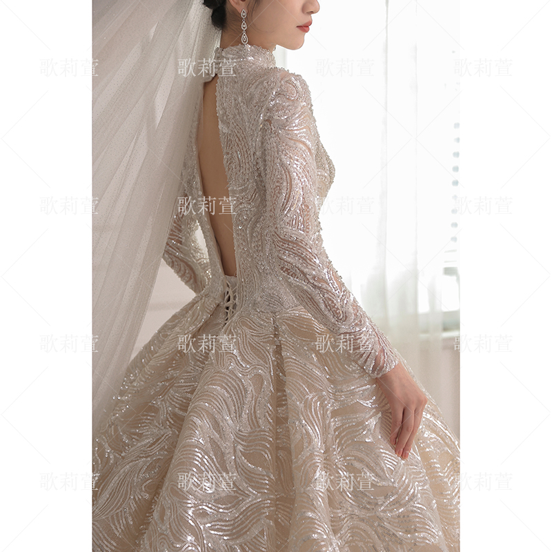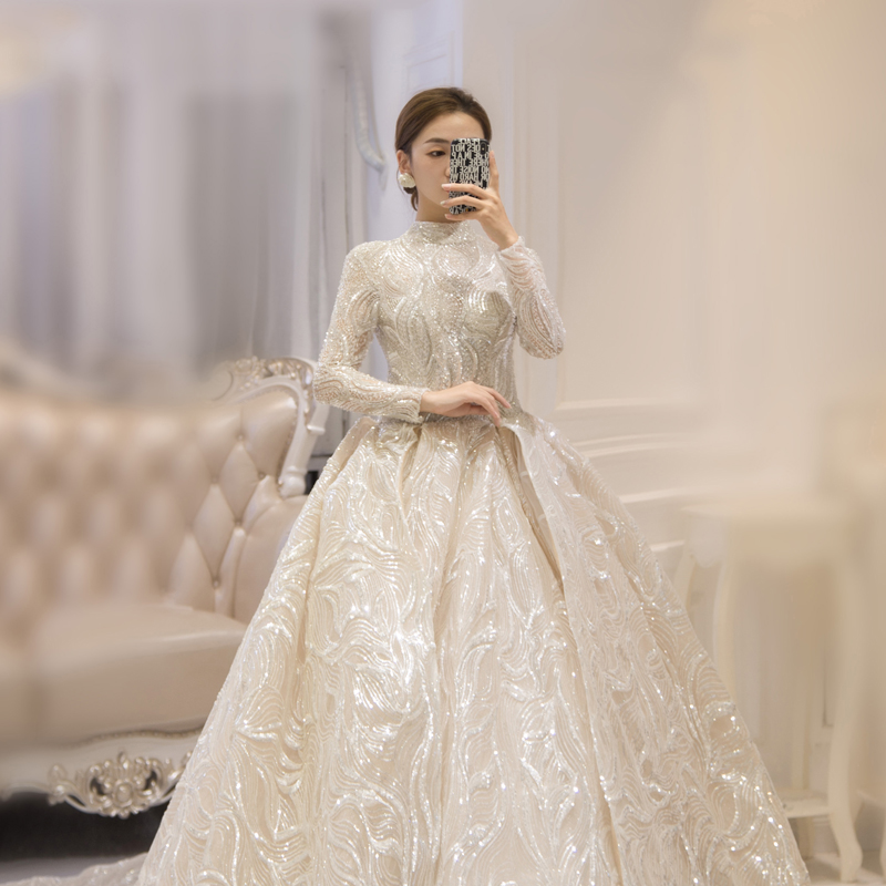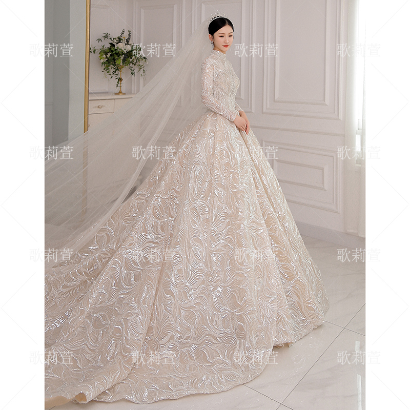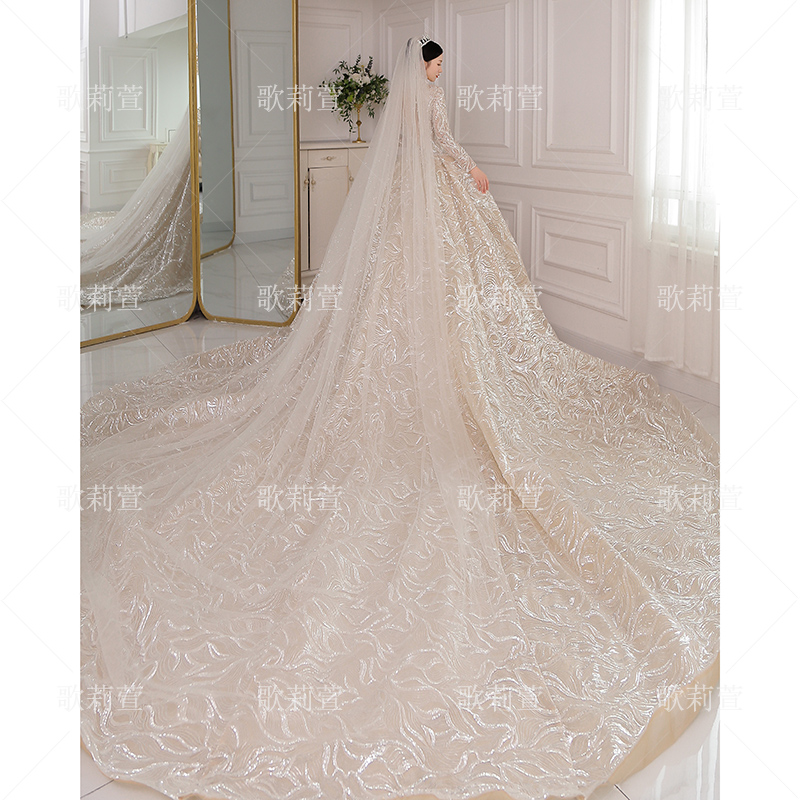 Long sleeve bridal main wedding dress 2021 New French heavy industry retro luxury fantasy starry sky big tail 2020