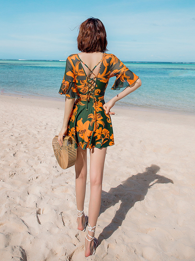 Korean bathing suit female summer small chest sexy cover belly thin body large size conservative fairy seaside one-piece swimsuit