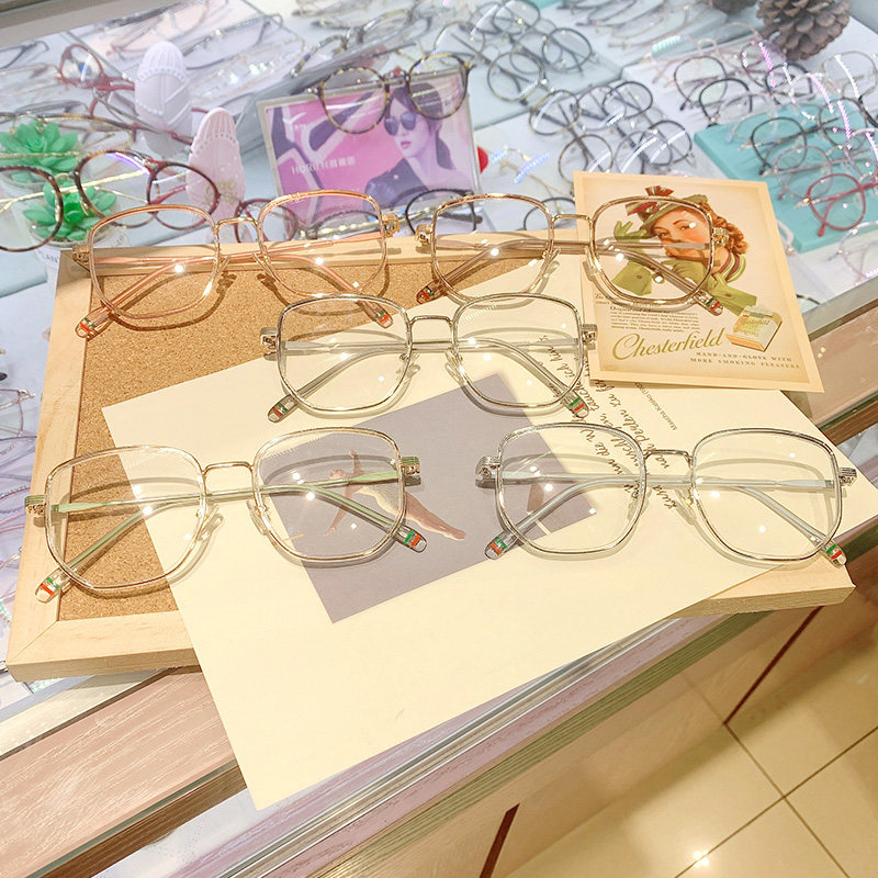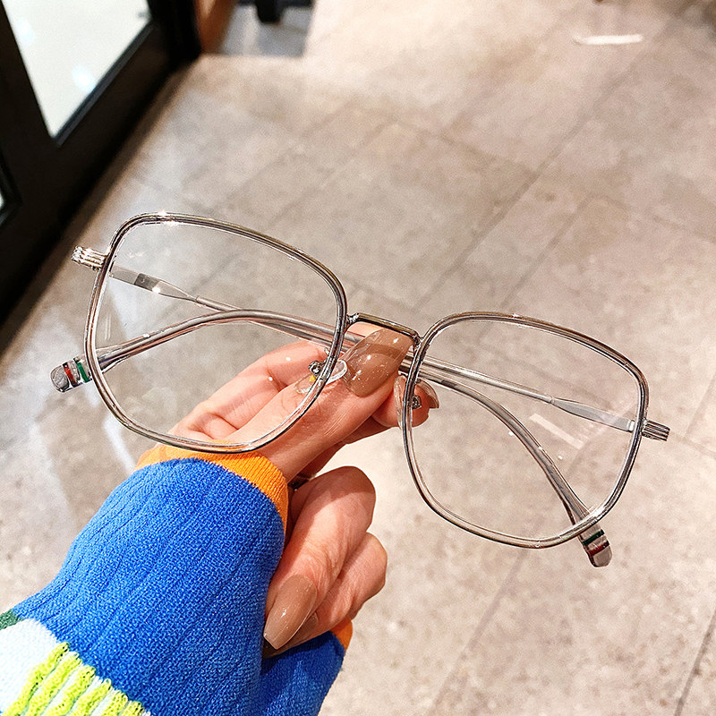 Anti-radiation glasses female anti-blue light myopia can be equipped with degrees fatigue eye protection large frame male Korean version of the tide flat light through gray