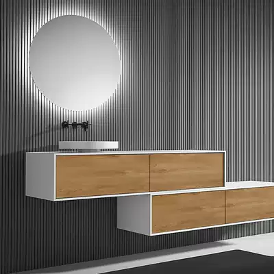 Bathroom cabinet modern light luxury European Wall Wall bathroom cabinet artificial stone countertop LED makeup mirror wash table combination