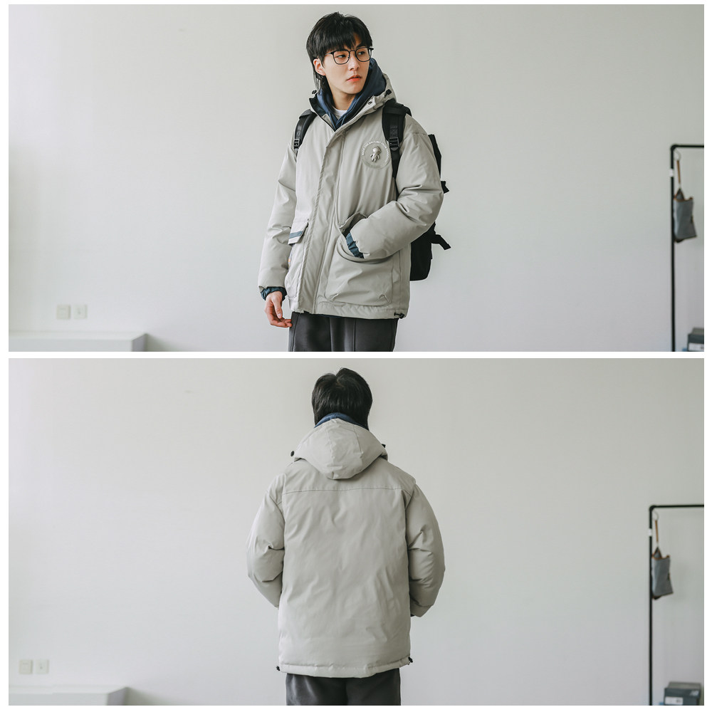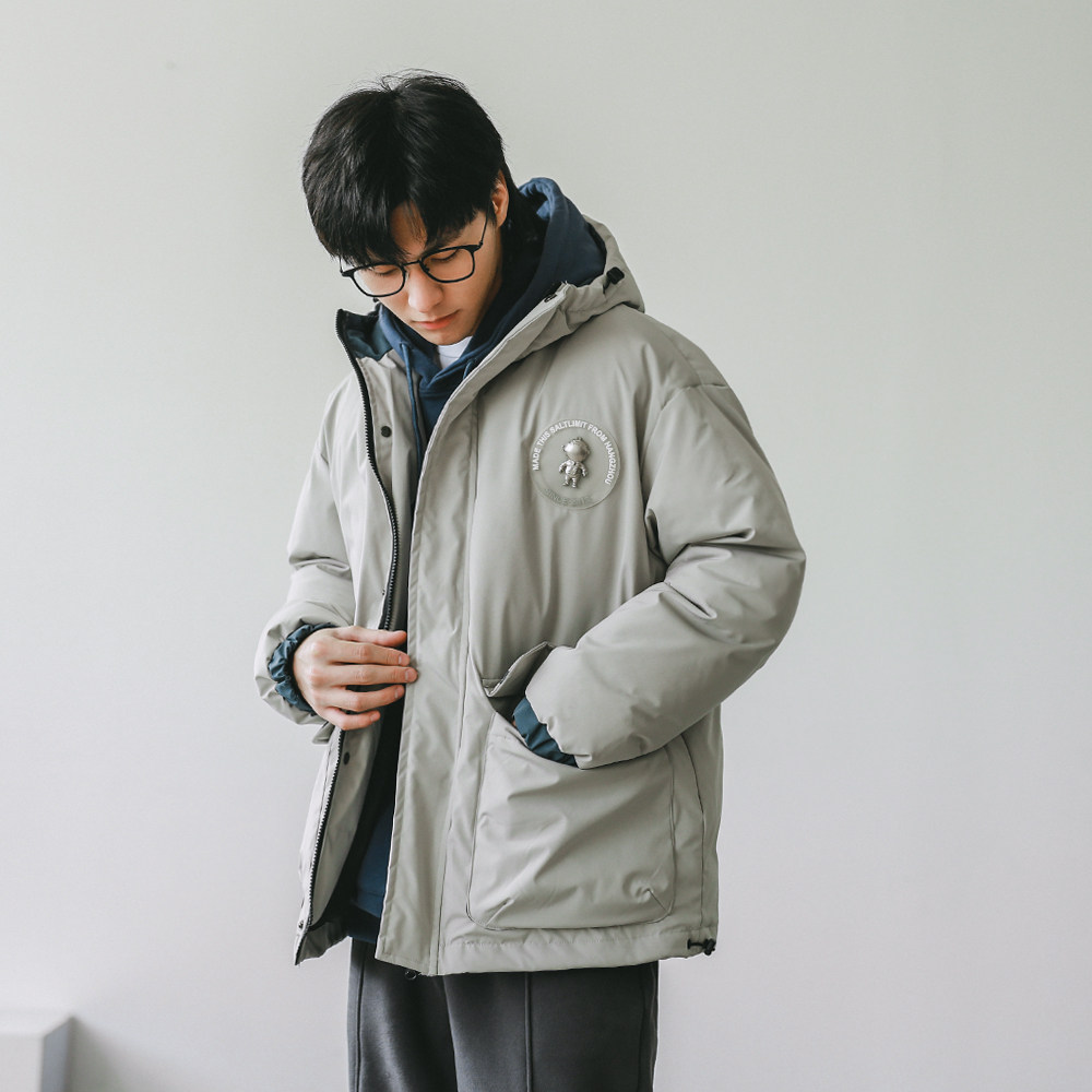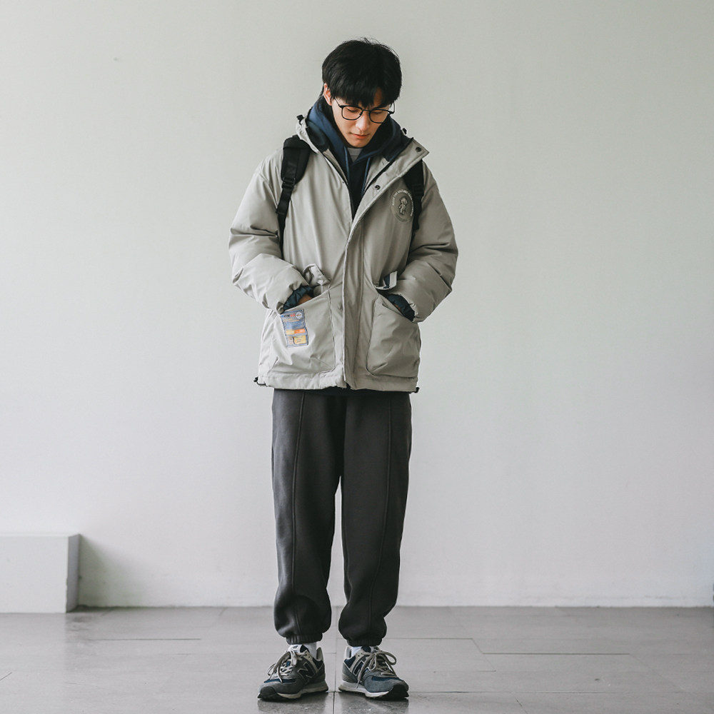 Hey Ma Seven as a winter collage for winter collage, a male car with a cap, and a thickened casual coat damp in a cotton suit.