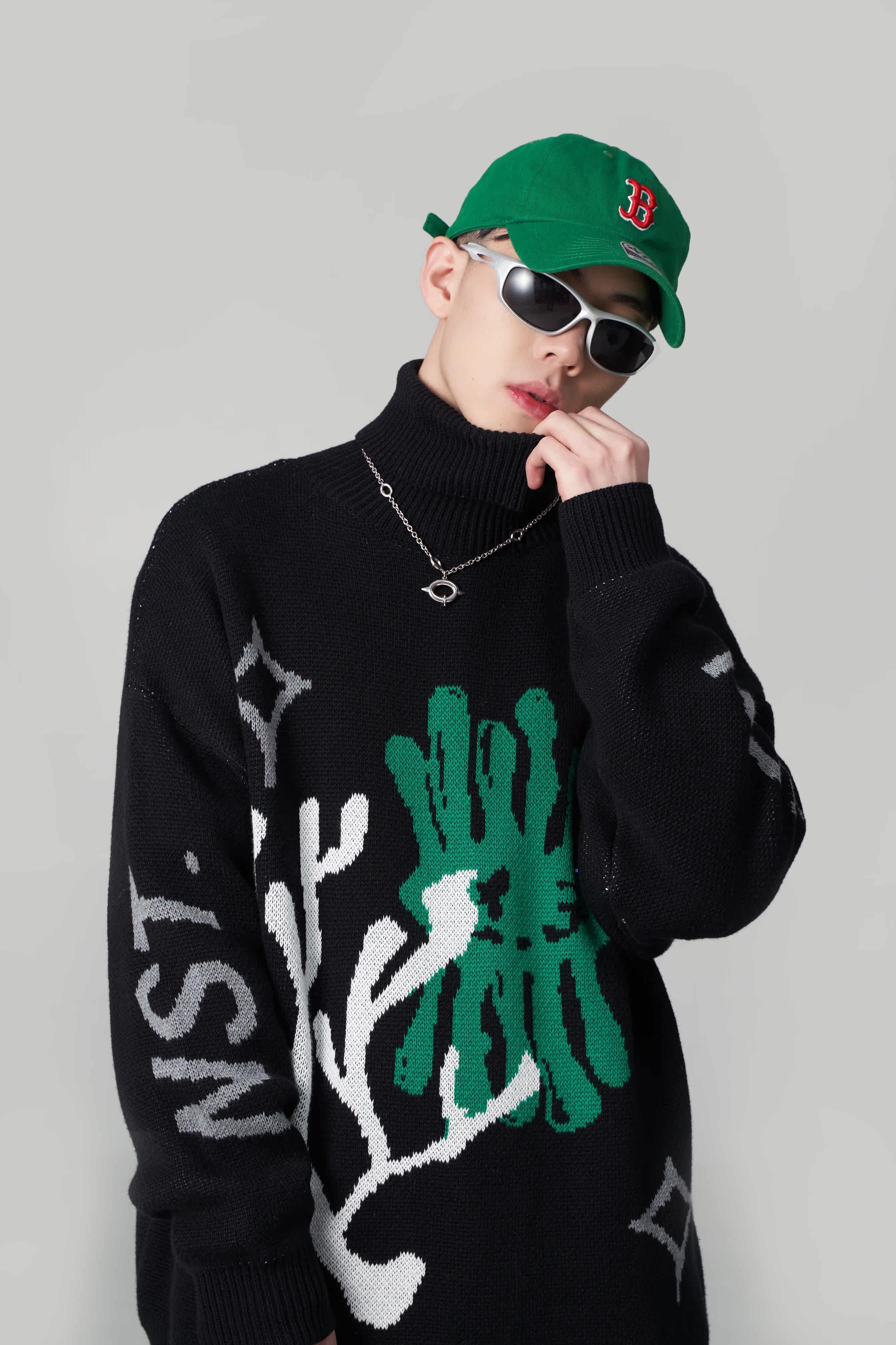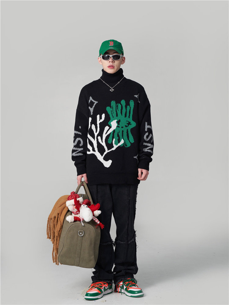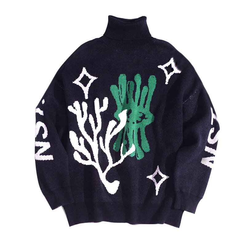NSTNEW START plant flower whale eye turtleneck Christmas sweater couple thickening retro tide brand sweater