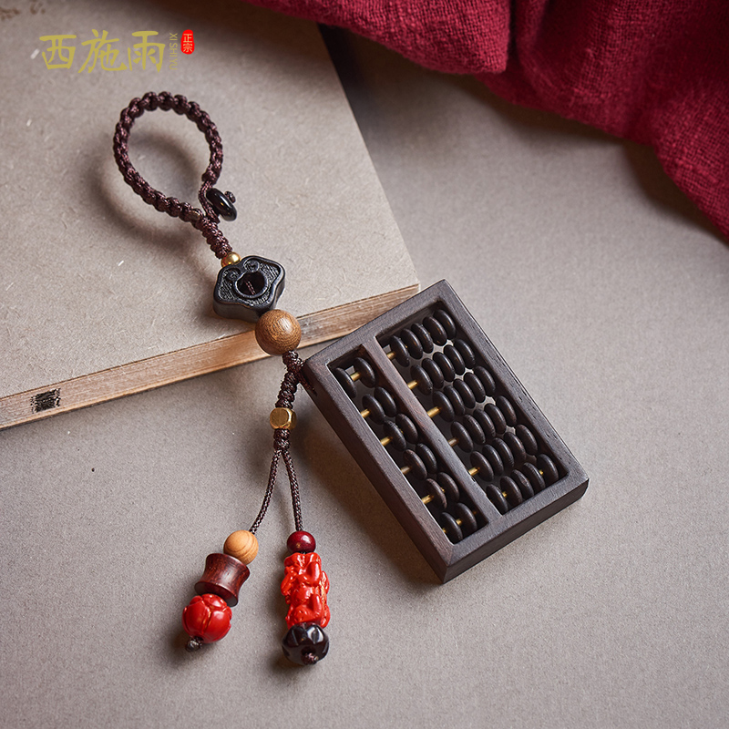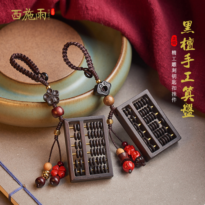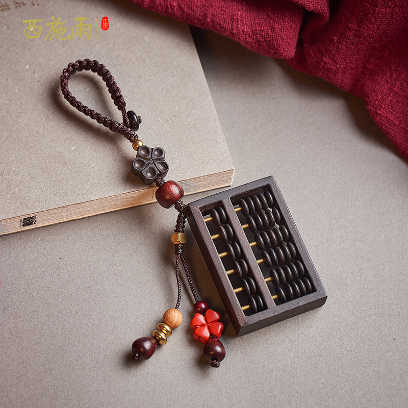 Car key chain pendant men's high-end ebony wood abacus handmade personality creative text play custom key chain female