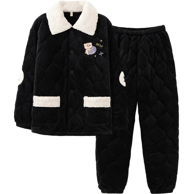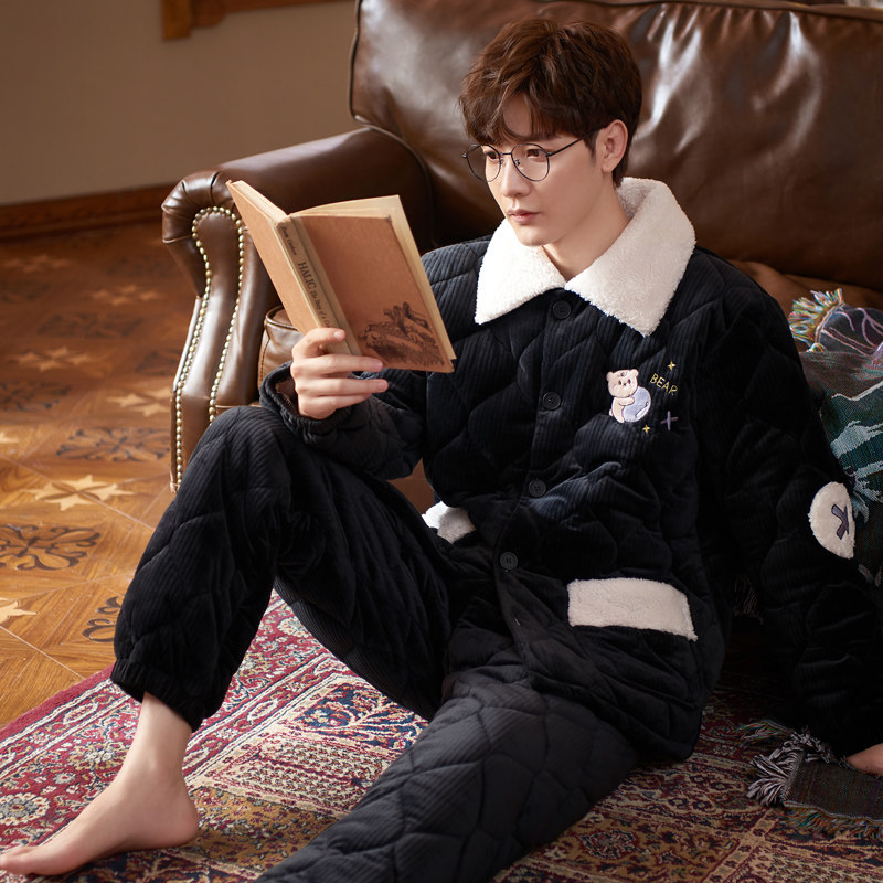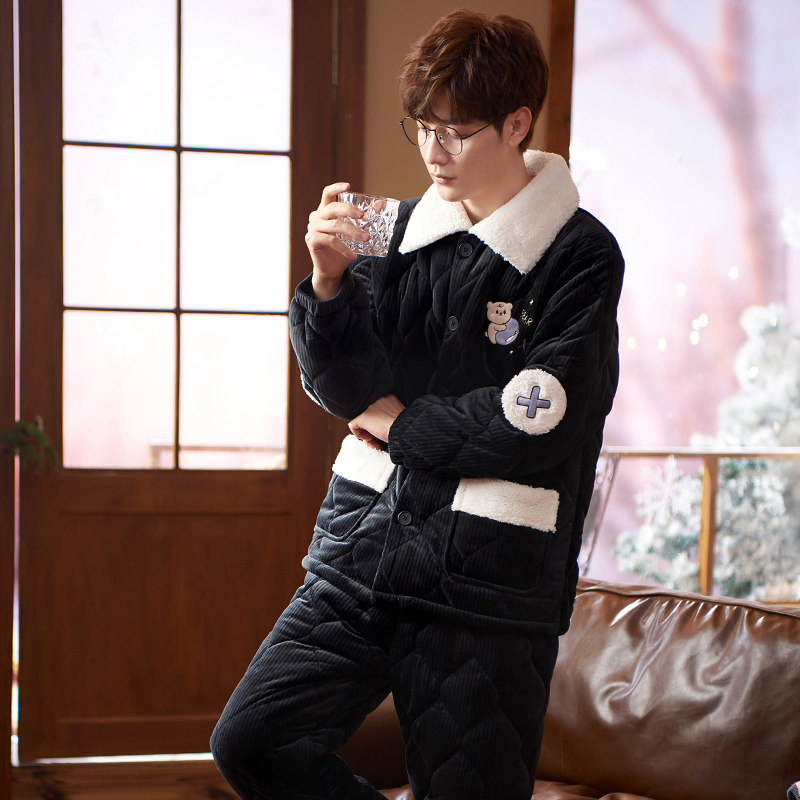 Men's sleepwear winter style thickened and velvety coral suede three-layer clip cotton ultra-thick and large size for winter 2021 new