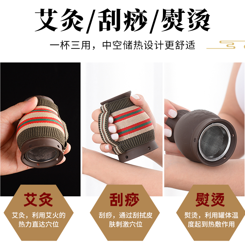 Moxibustion pot ceramic cupping moxibustion integrated beauty salon purple sand Bianstone home anti-scalding multi-functional moxa column pot moxibustion box