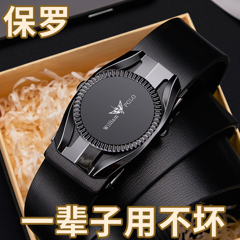 Royal Rav Laurenma ball men's belt automatic buckle genuine leather pure cow leather belt personality trend No toothless wearing Korean version of pants strap