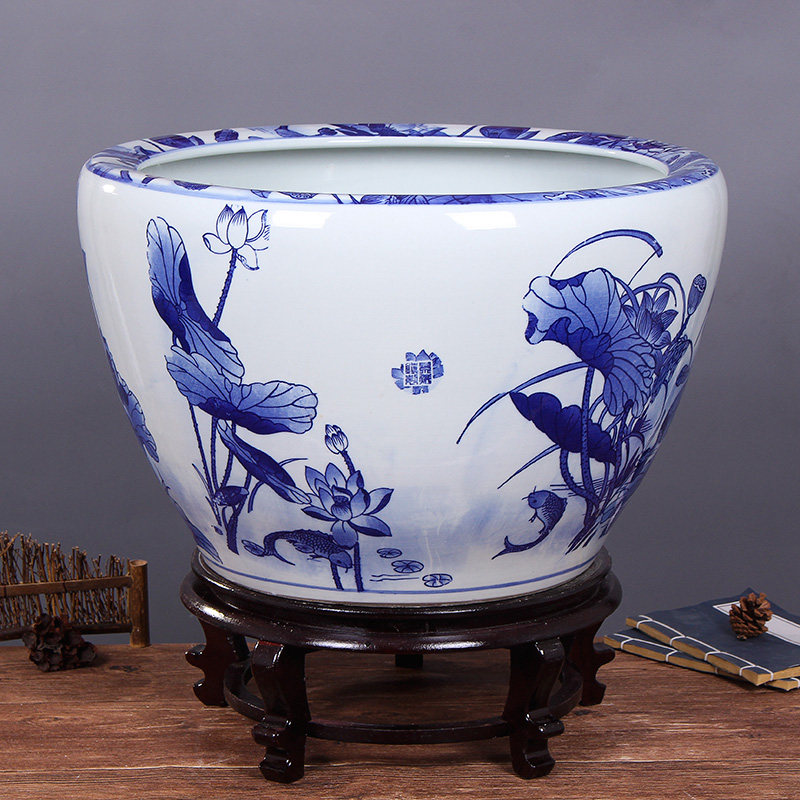 Jingdezhen ceramic retro fish tank antique goldfish tank turtle tank water lily pot lotus tank bowl lotus tank extra large