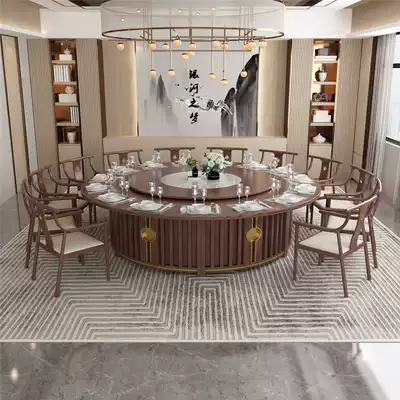 Hotel electric round table new Chinese restaurant box solid wood table Club 20 people automatic rotating plate hot pot table