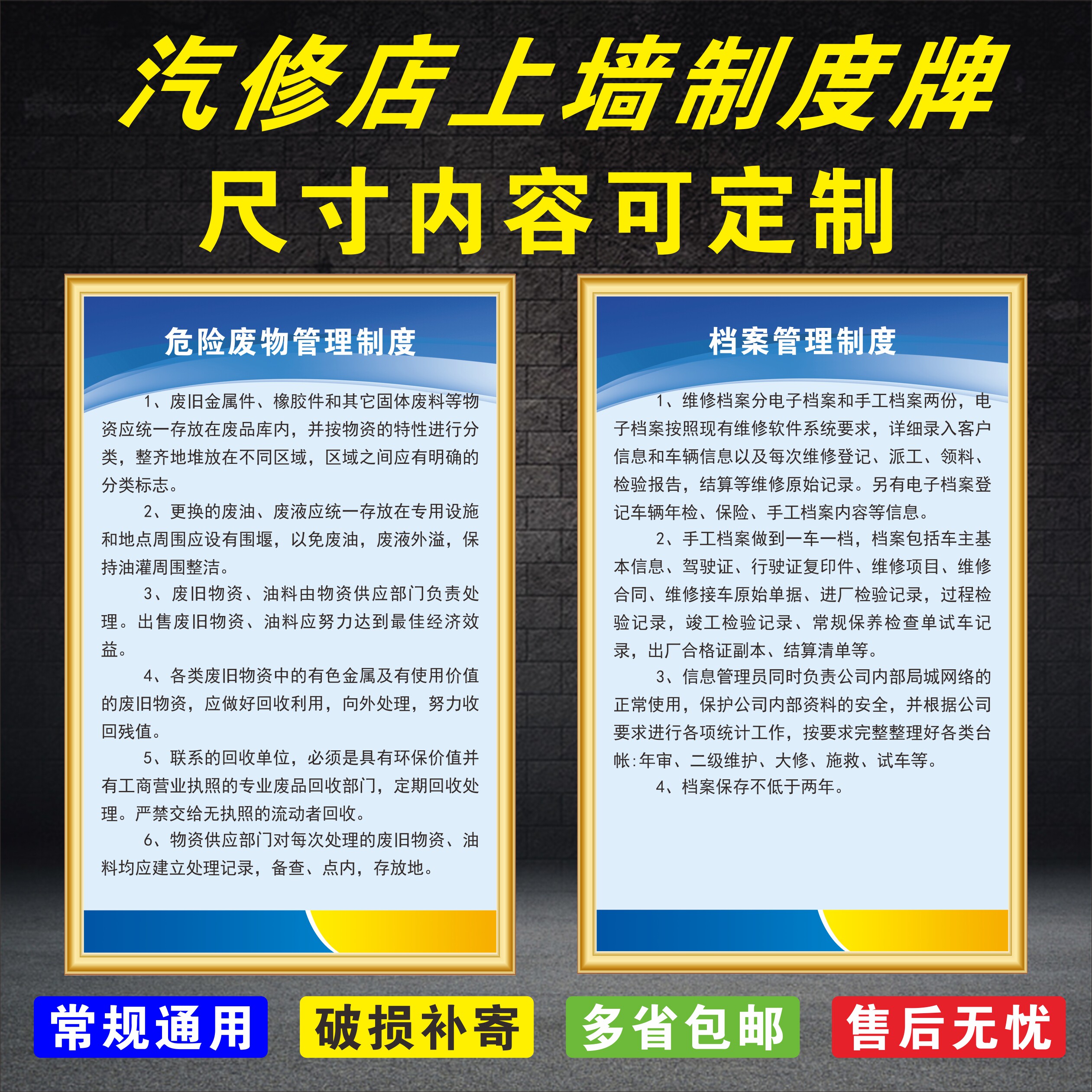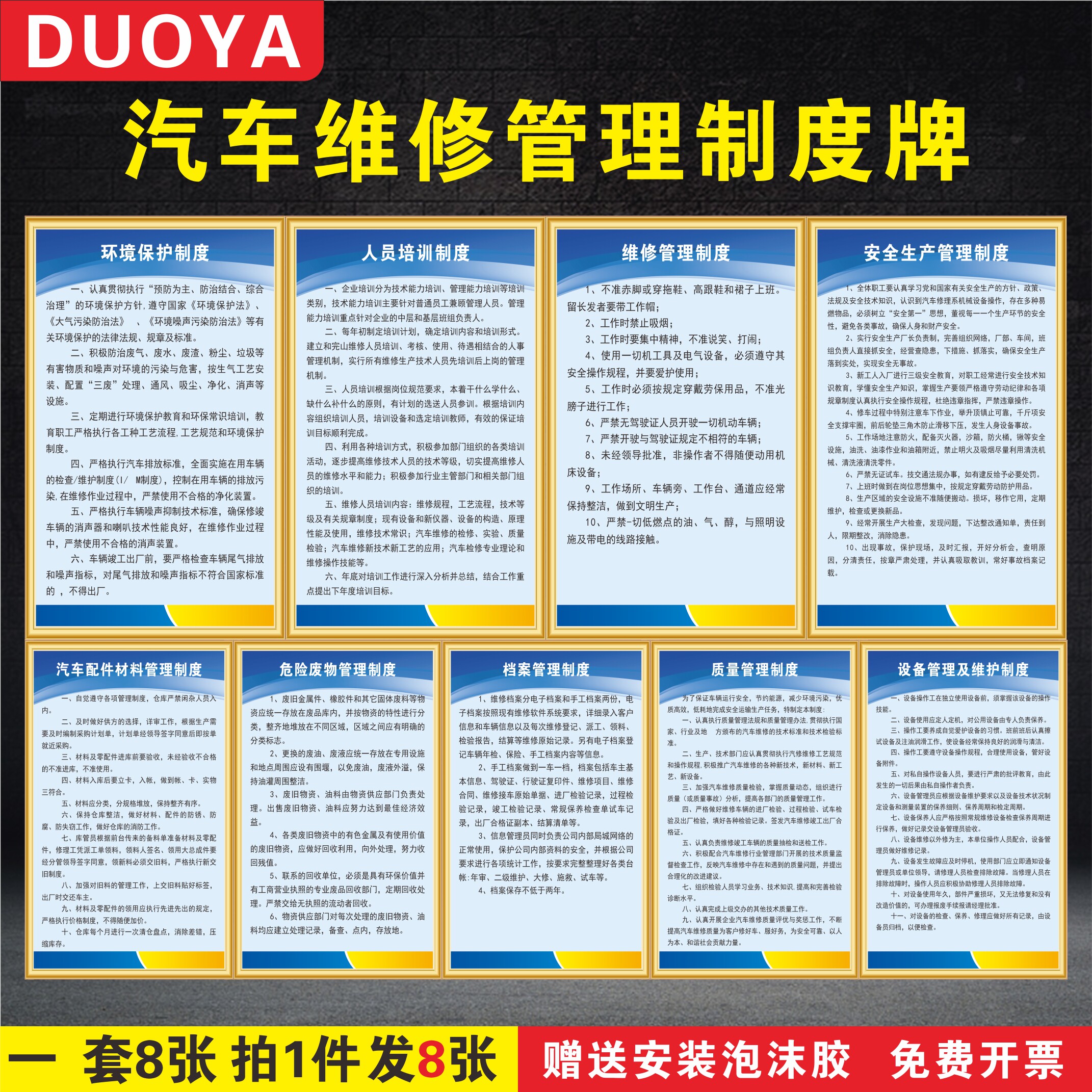 4S Shop Car repair shop management system Card II Type of steam repair Upper wall ID Card Safety Production Slogan Equipment Repair and accessories Management Hazardous Waste Environmental Protection Card KT