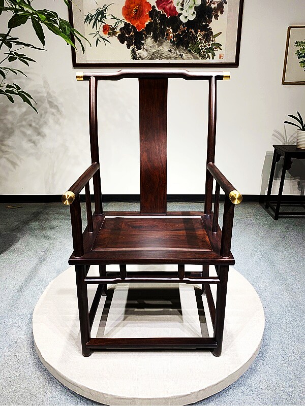 Solid wood ebony Chinese simple office leisure official hat tea table boss president host guest backrest chair bench