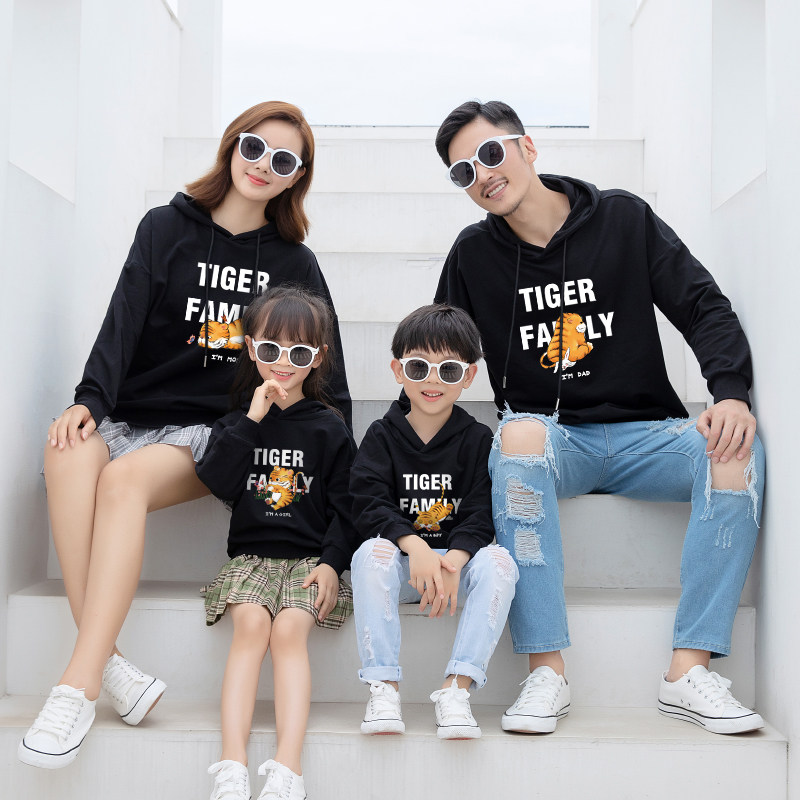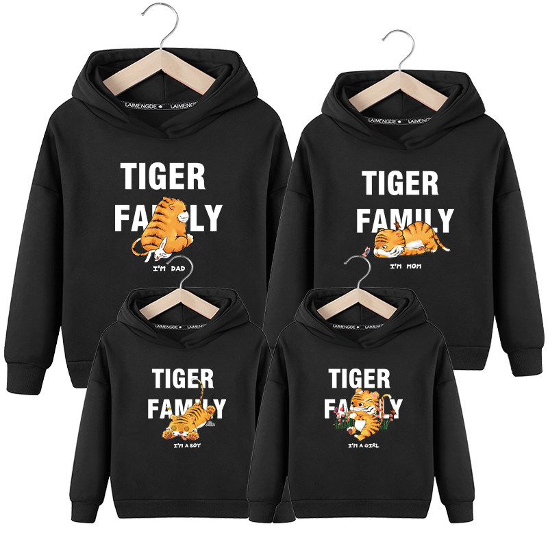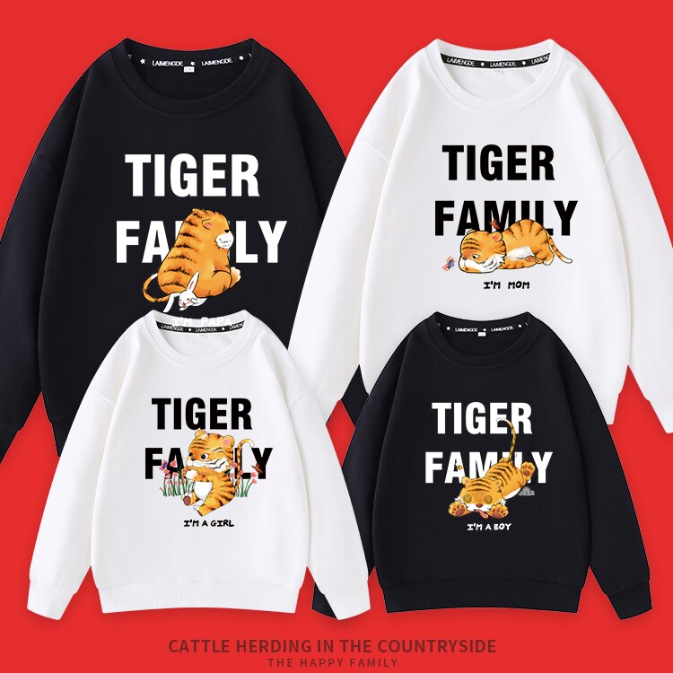 Year of the Tiger Parent-child Clothing Winter Style A family of three and four 2021 new mother and son mother and daughter family portrait plus fleece sweatshirt for the New Year