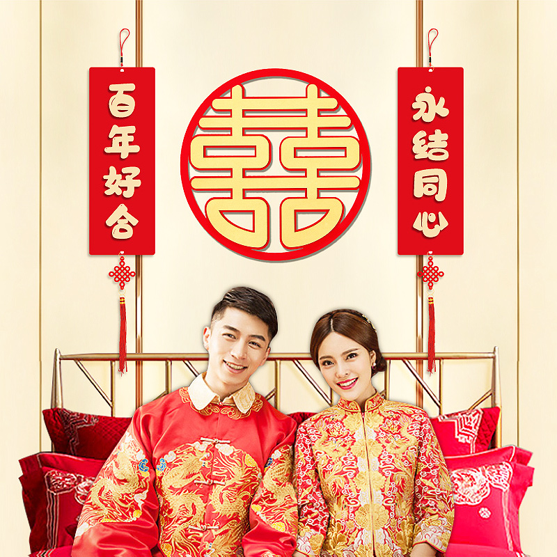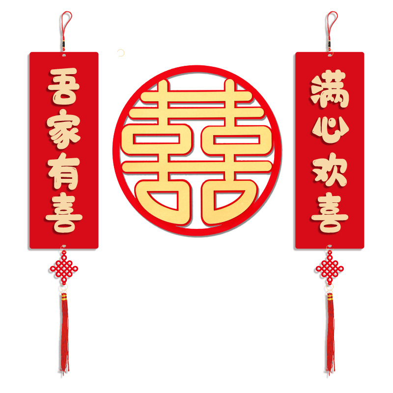 Happy words to the junction Wedding Celebration Little Couplets Men's Party Wedding House Doors Joyful Decoration Woman's Marriage New Wedding Door Pendant