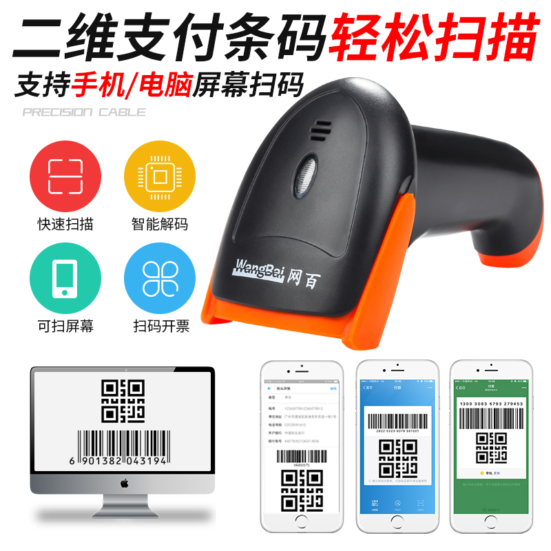 Net 100 K2 cable two-dimensional red light scanner agricultural capital supermarket express one dimensional and two-dimensional wireless sweeper