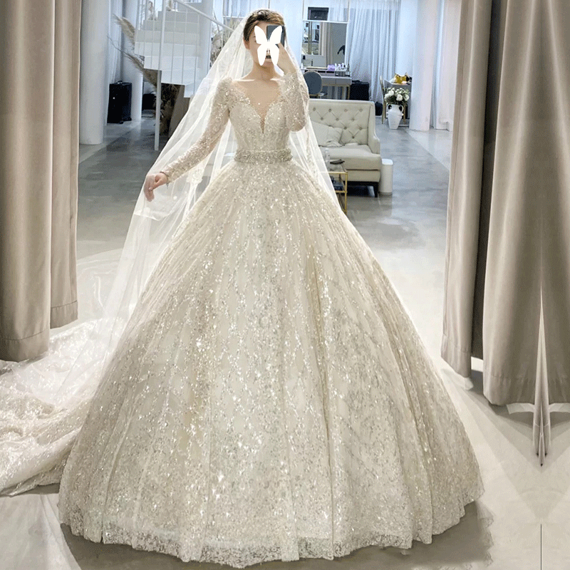 French light main wedding dress 2020 New temperament bride tailing Mori Super fairy dream long sleeve thick arm 2021