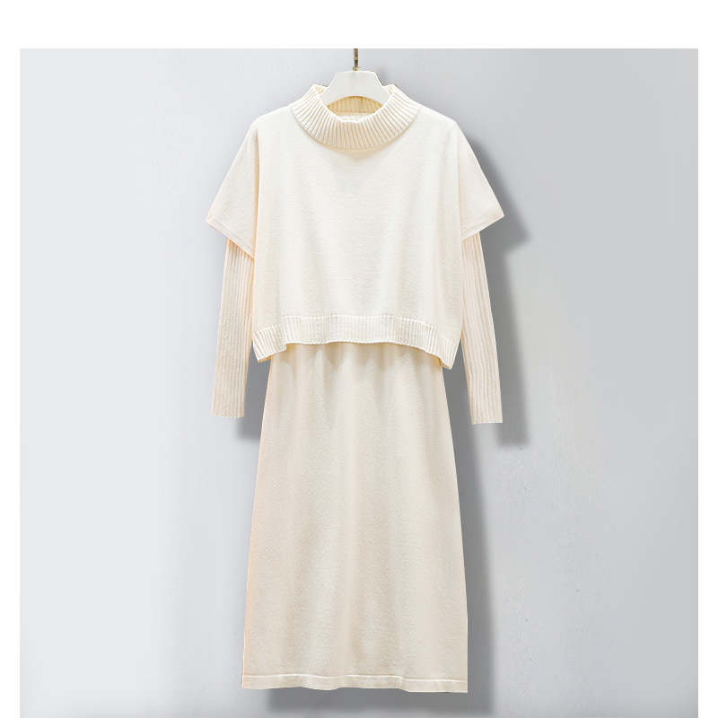 Large size female dress Fat sister Slim Red Ocean Dress Woman spring bursting with small Fragrant Wind Suit Skirt Knit two sets