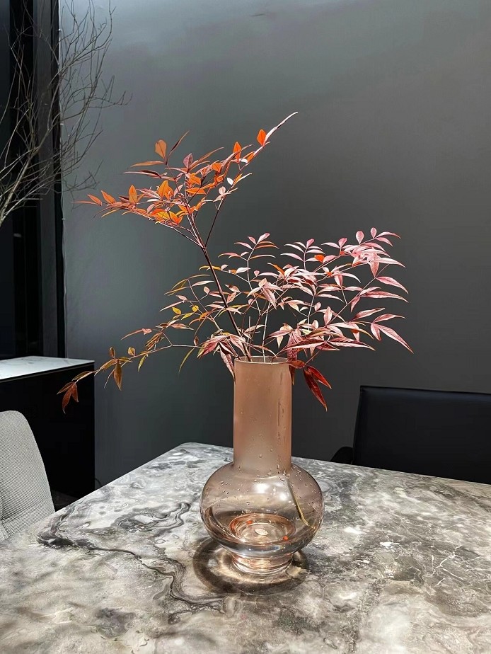 Modern Brief Pink Frosted Glass Vase Hem Living Room Flower Arrangement Creative Adornment Dinner Table Xuan Guan Furnishing