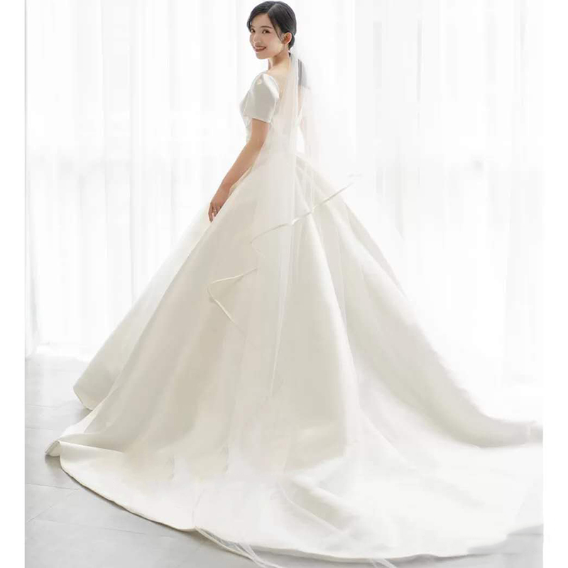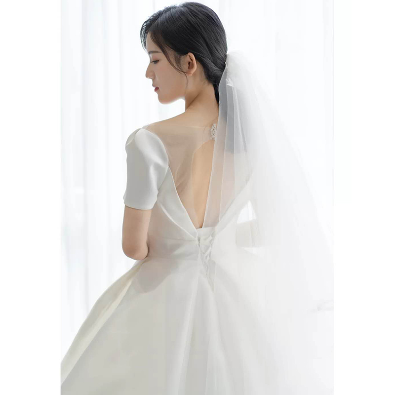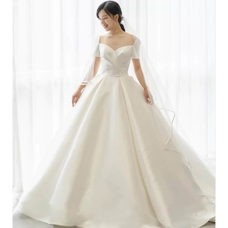 French satin main wedding dress 2022 new temperament bride Mori simple trailing super fairy dreamy light wedding dress