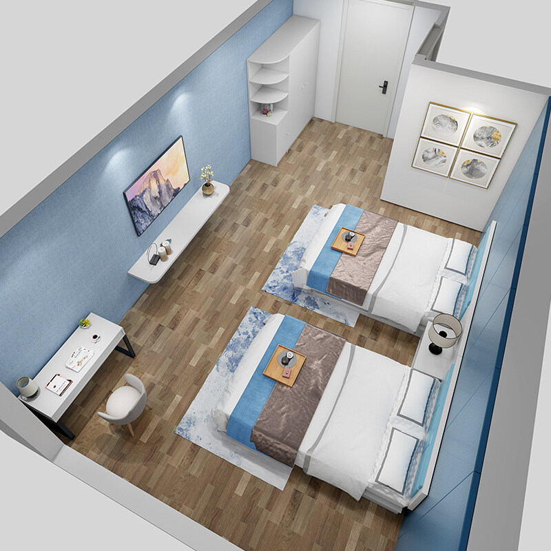 Factory direct sales hotel bed simple modern custom hotel single shoulder standard room full set of furniture rental house bedside table