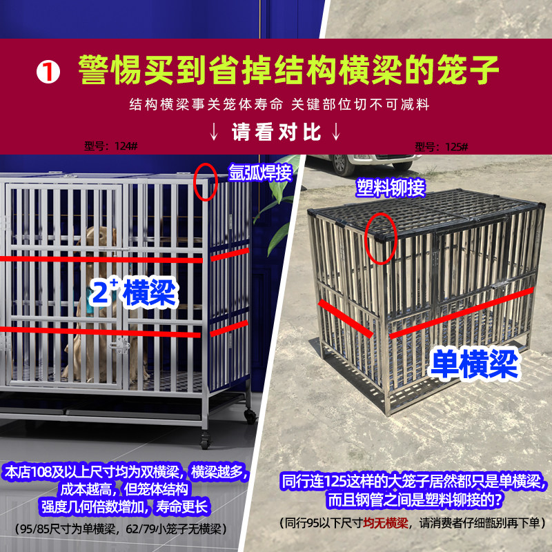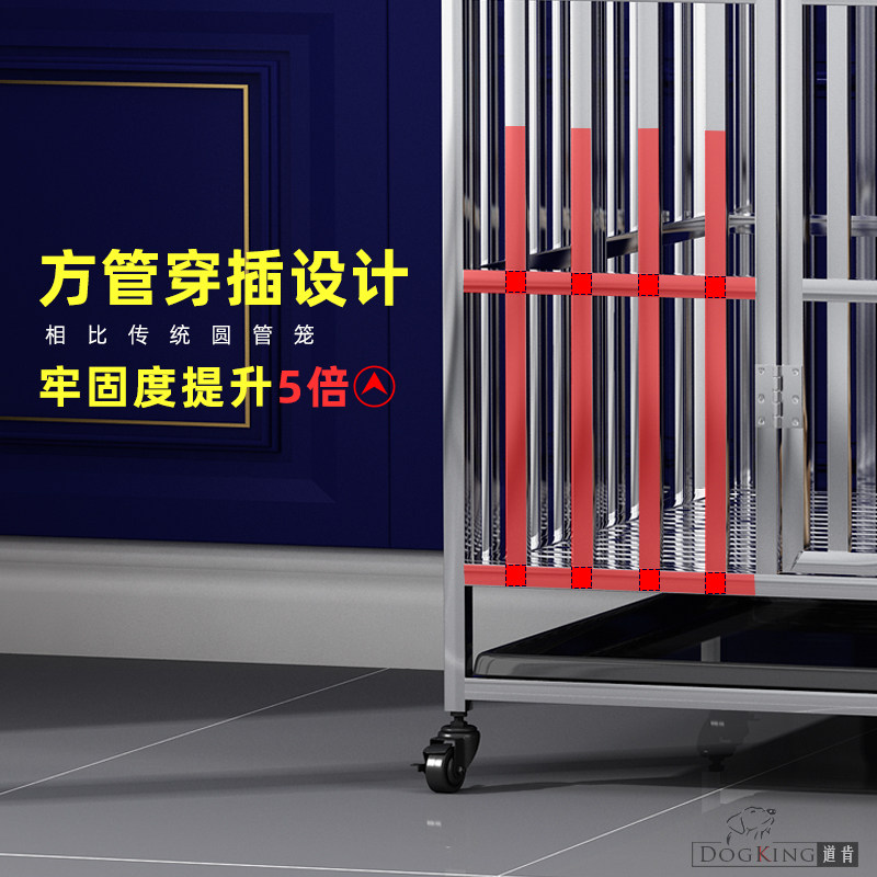 Muted Folding Full Square Tube Stainless Steel Dog Cage Sublarge Canine Wool Teddy Indoor Dog Cage With Toilet New