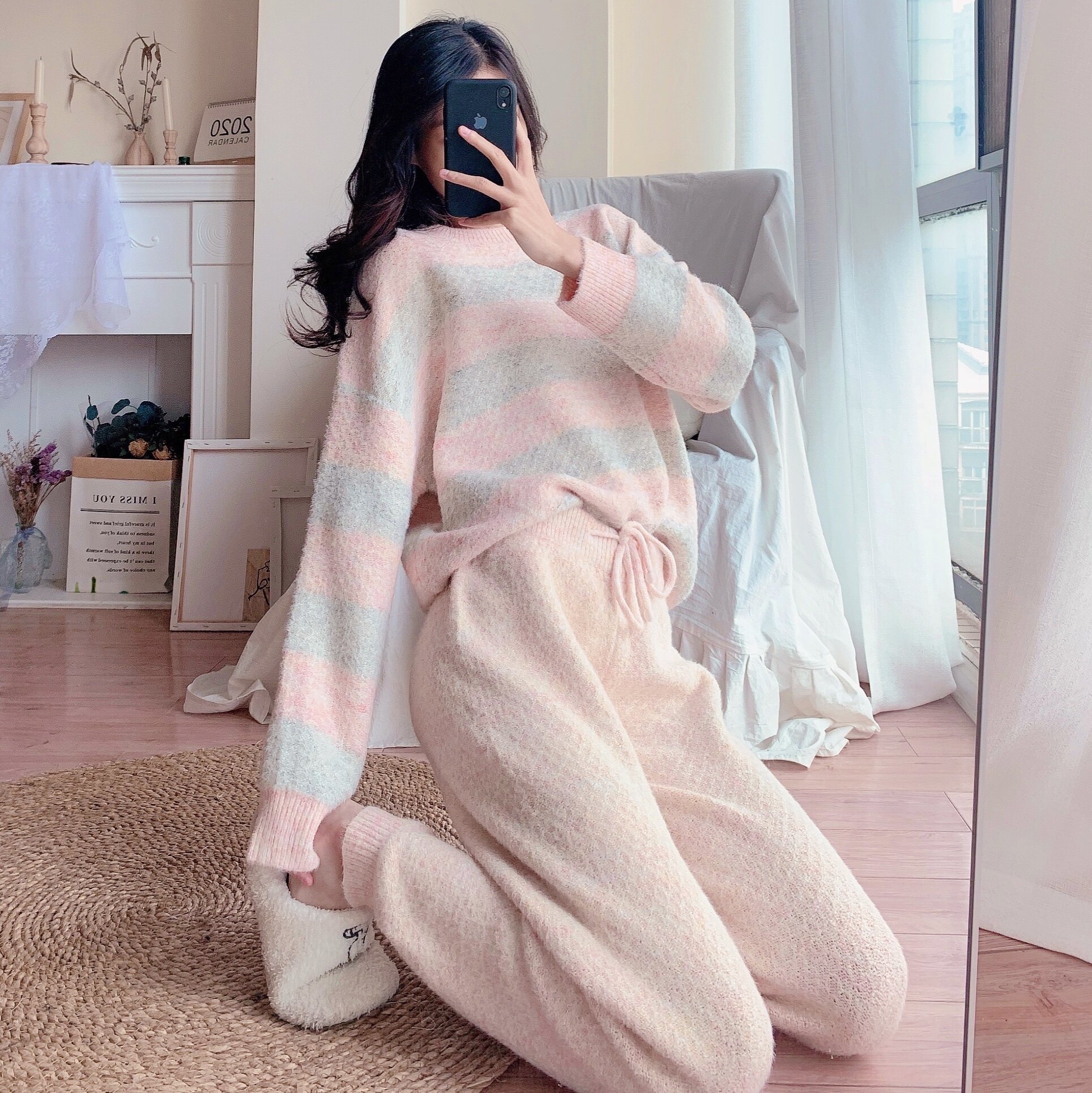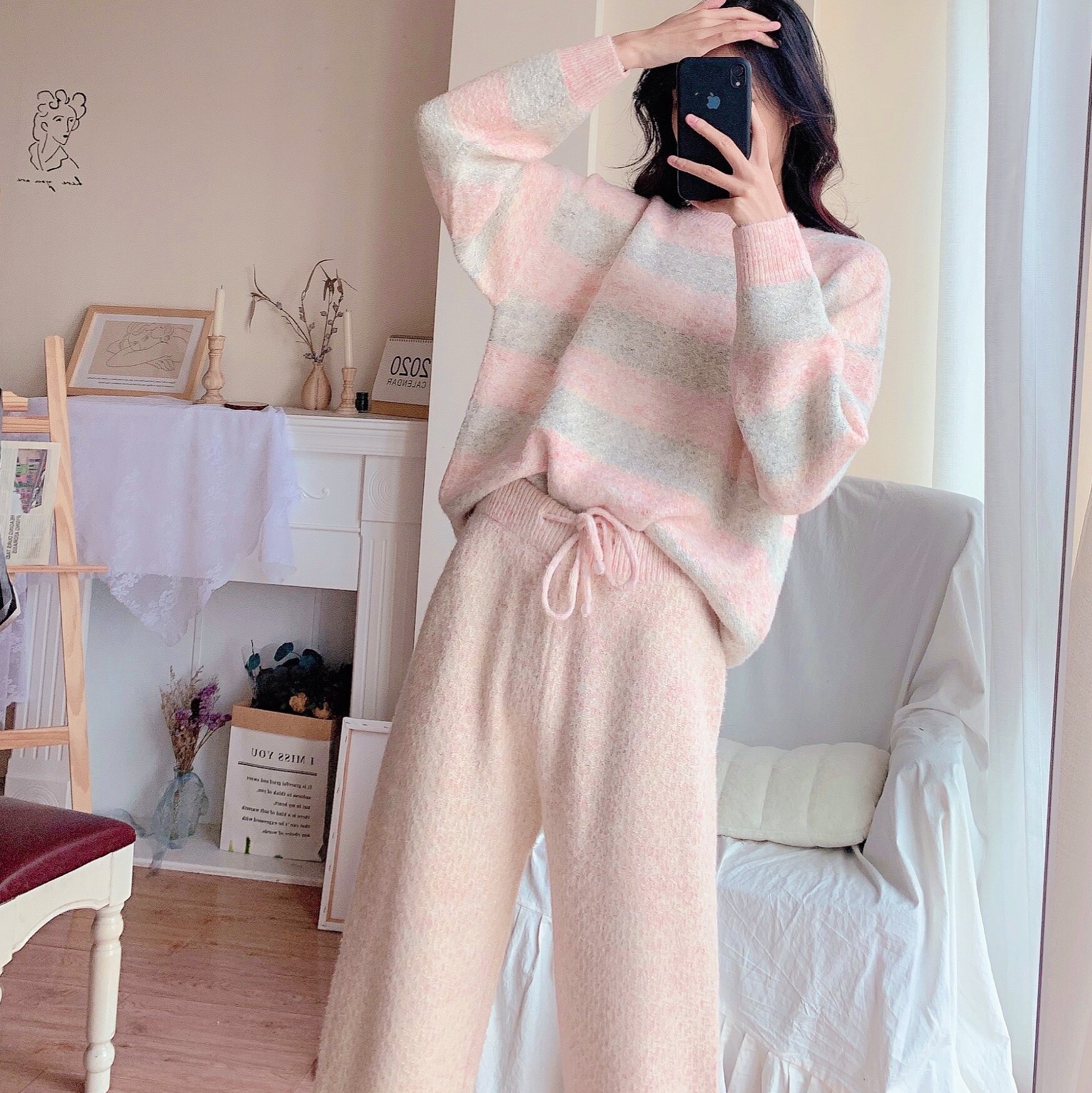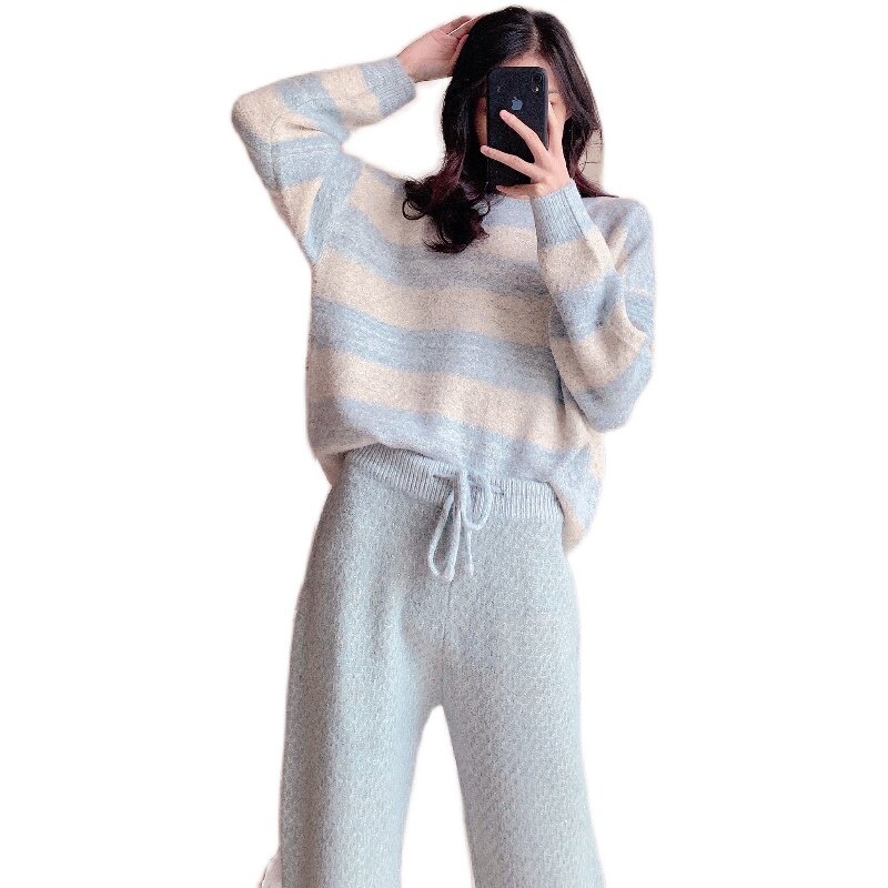 Xiaohongshu recommends soft pajamas women's autumn and winter striped fashion can be worn outside the net red home clothes suit