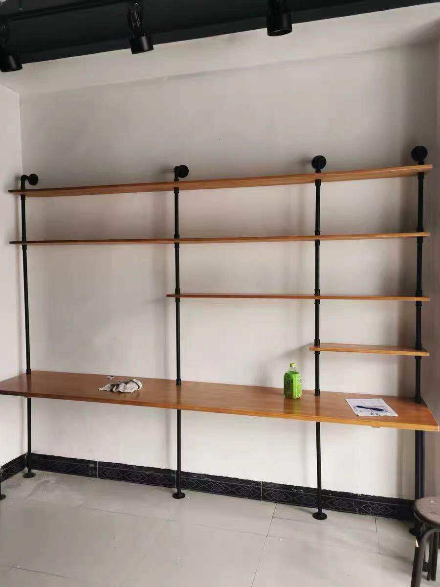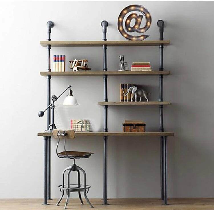 Loft water pipe rack bookshelf retro industrial style desk bookshelf solid wood wall partition rack wrought iron rack customization