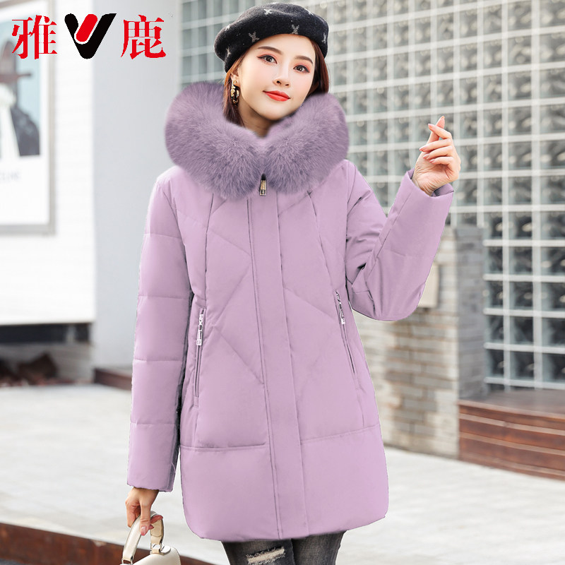 Yalu Mom Feather Feather Woman Winter long version of white duck velvet middle age real hair neck high end small fashion pie