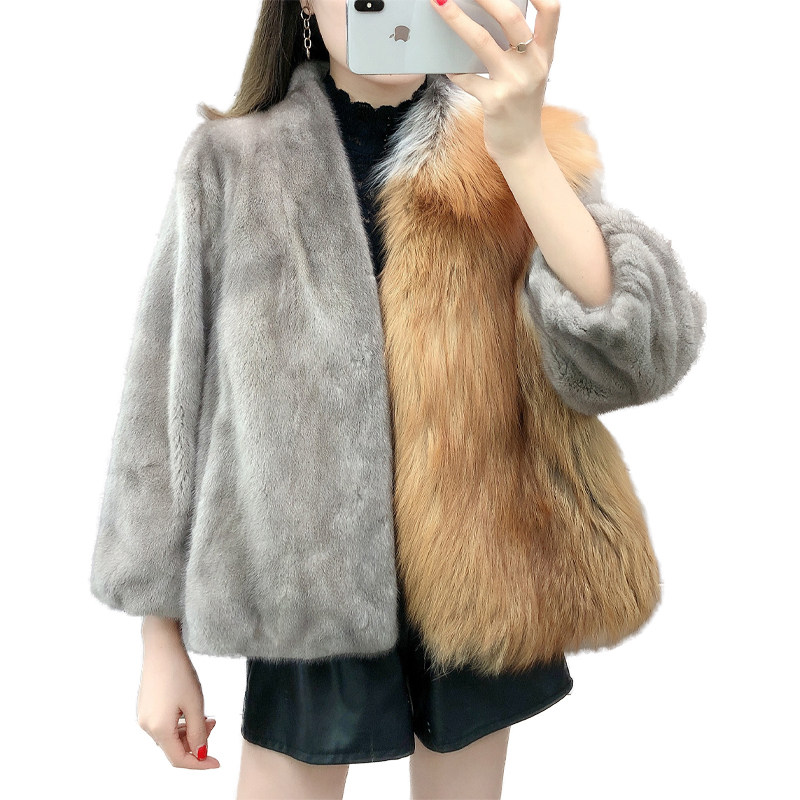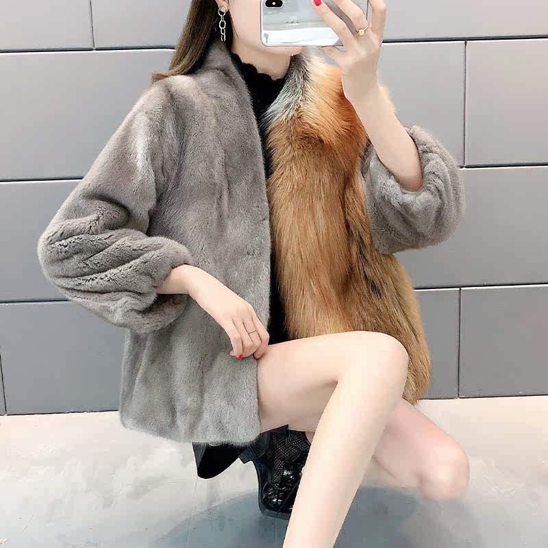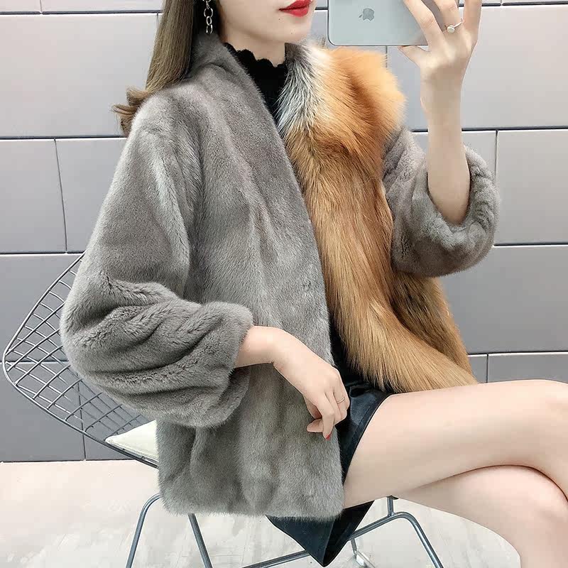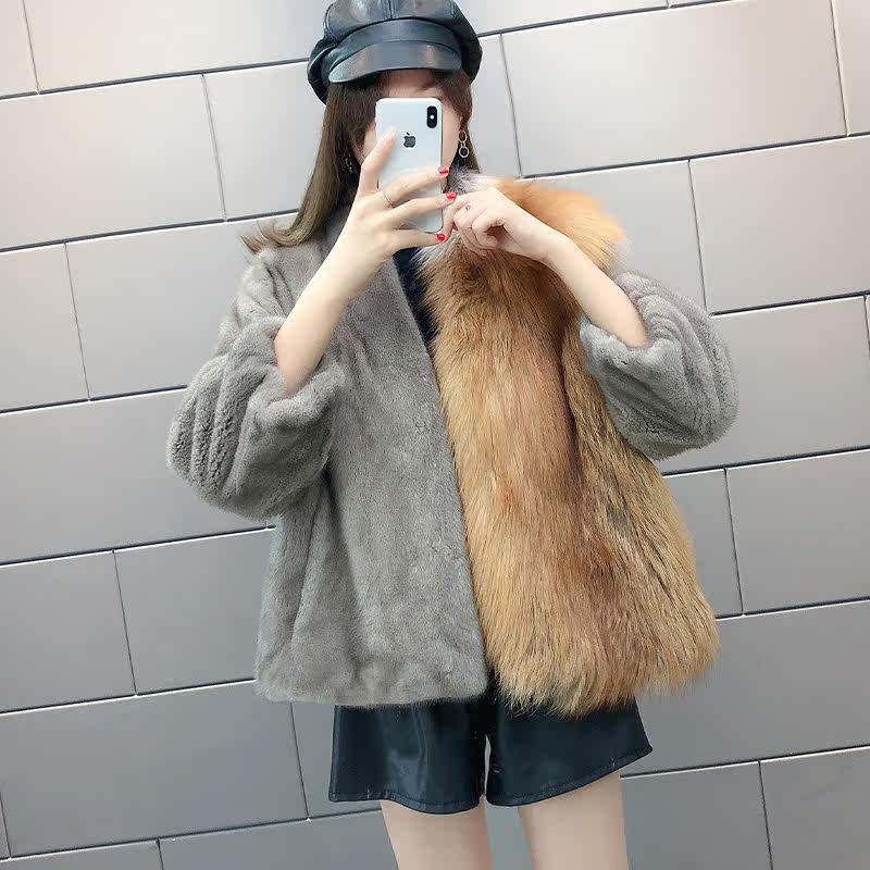 Mink fur coat female foreign short imported mink fur coat whole mink young fox fur luxury small - Taobao