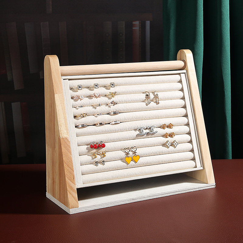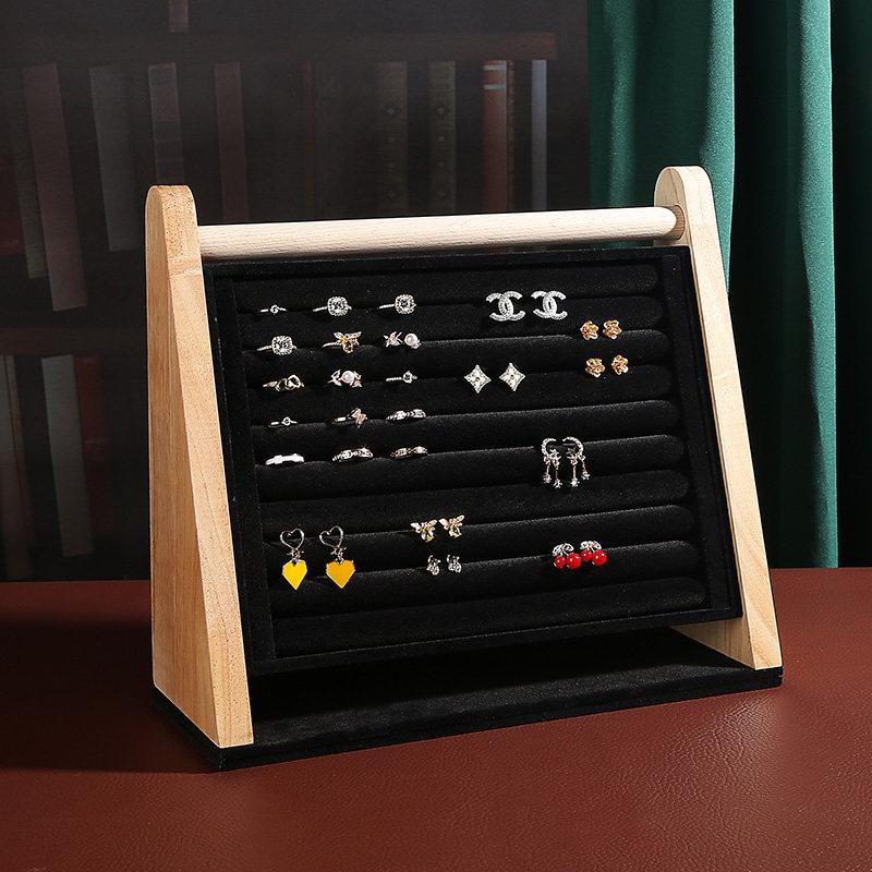 Solid Wood Bevelle Standing Rings Show Shelf Suede suede Ear Pin Earrings Ornament Frame Jewelry Store Display Props