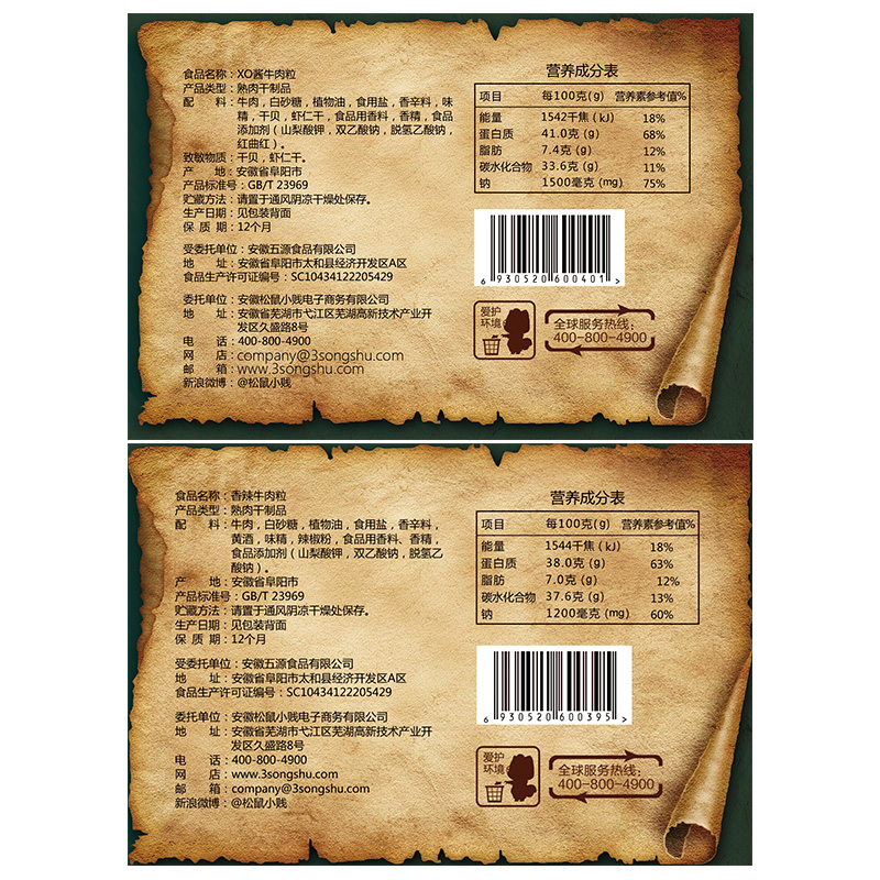 Three squirrels casual snacks with spicy beef grain XO sauce beef grain 110g