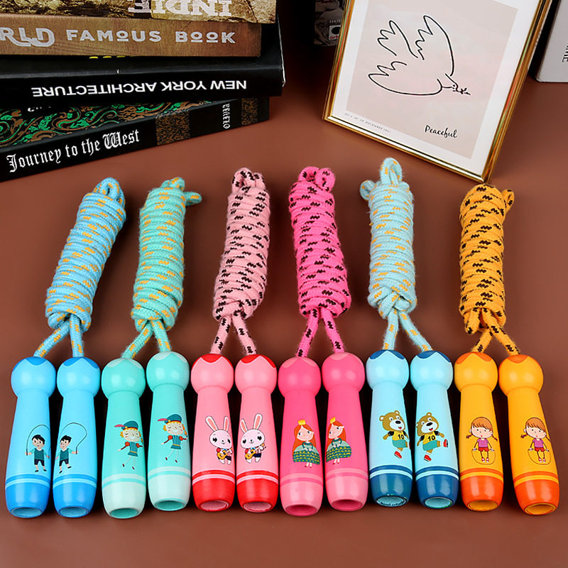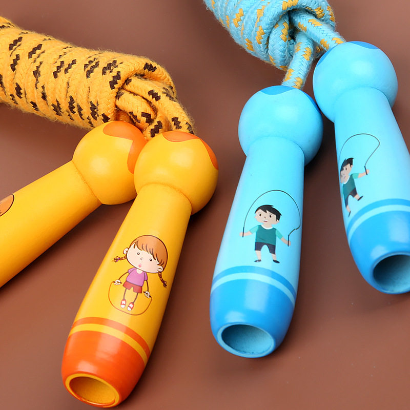 Sky blue boy section-wooden handle cotton rope 2 8 meters (length adjustable) Orange girl section-wooden handle cotton rope 2 8 meters(length adjustable) Light blue prince section-wooden handle cotton rope 2