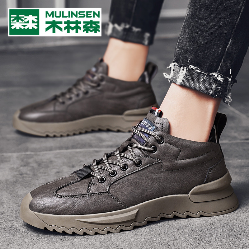 Mulinsen men's shoes autumn and winter 2020 new men's casual leather shoes black shoes all-match trend plus velvet cotton shoes