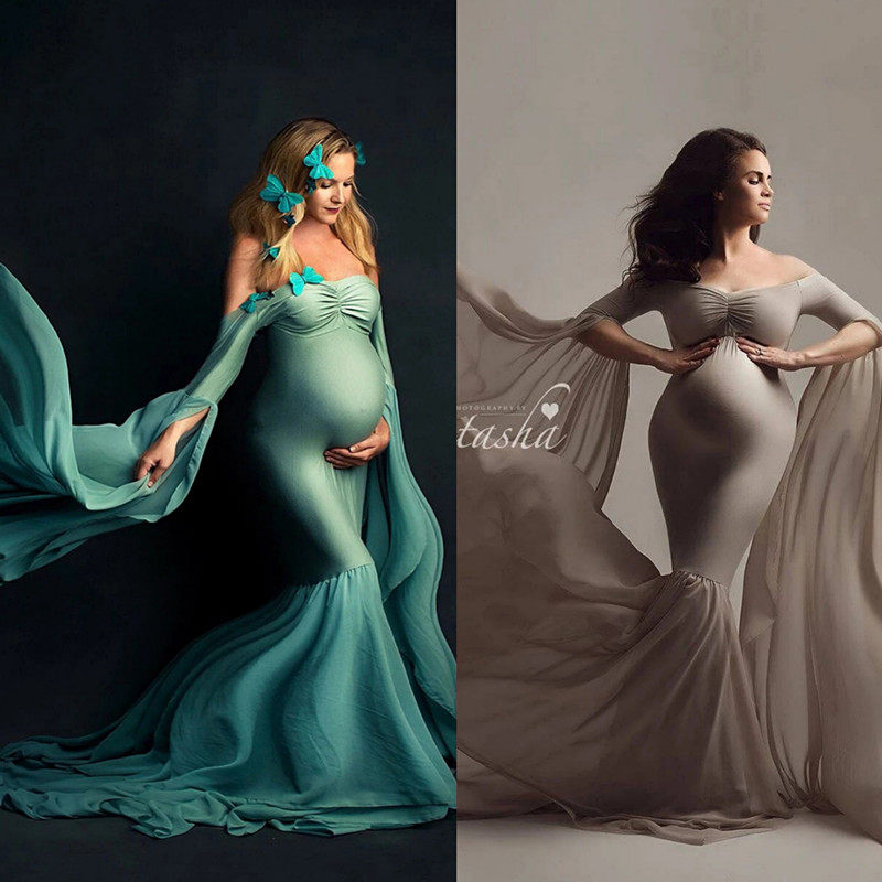 New product QSETT pregnant woman dress photograph picture of Chi spin drag long dress