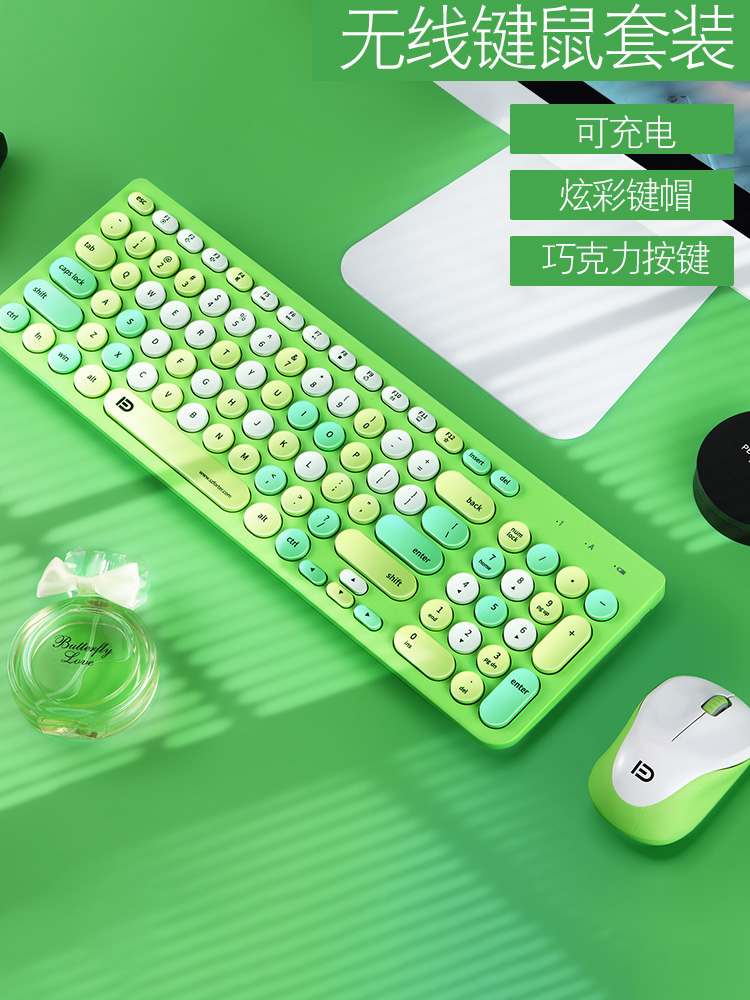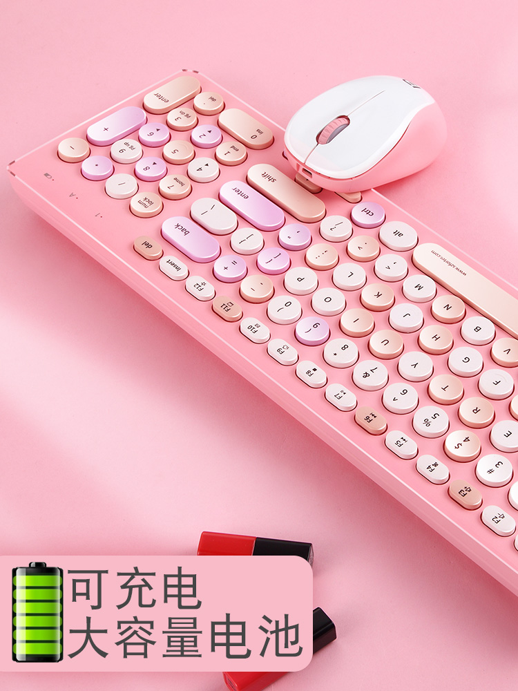 Fude USB Wireless Keyboard Mouse Set Computer Game Home Office Business Applicable Lenovo Xiaomi Microsoft Samsung Dell Founder Desktop Notebook Rechargeable Girl Cute Mute - Taobao