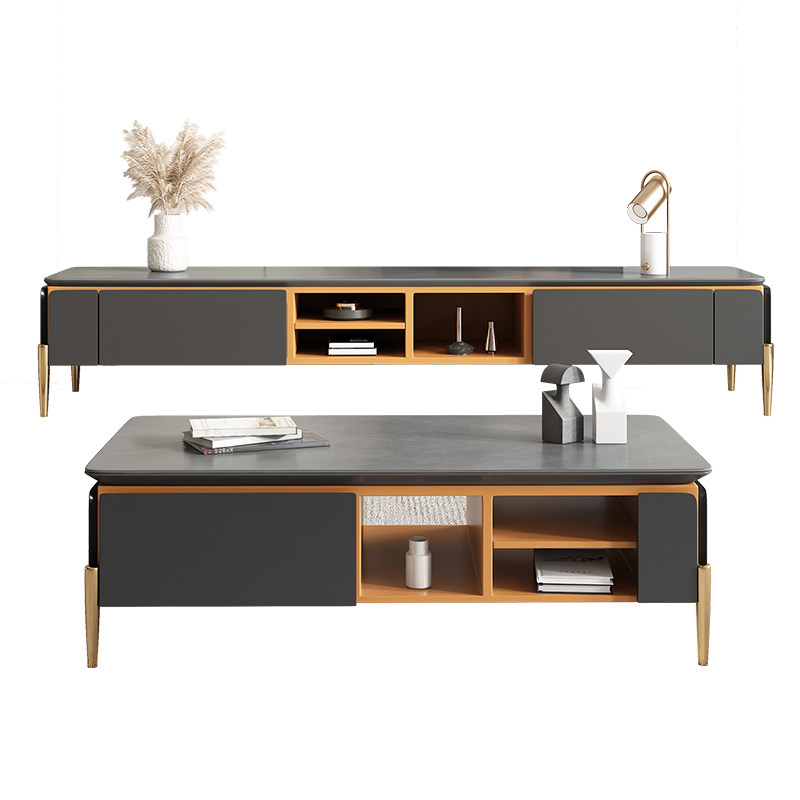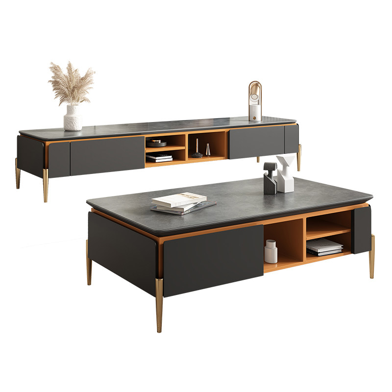 Slate TV cabinet coffee table combination light luxury small apartment home Italian high-end living room post-modern minimalist wind floor cabinet