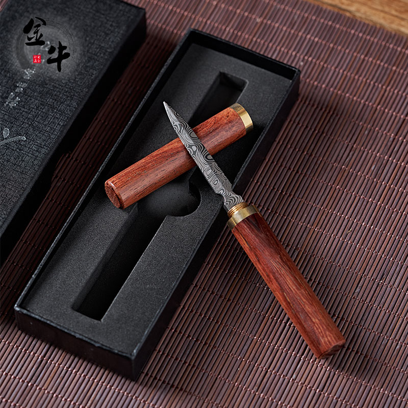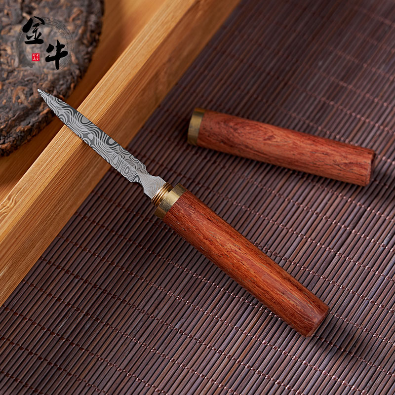 Golden Bull Rosewood Rosewood Stainless Steel Tea Knife Damascus Tea Needle Pry Tea Tool High-end Pu-erh Tea Cake Open Tea